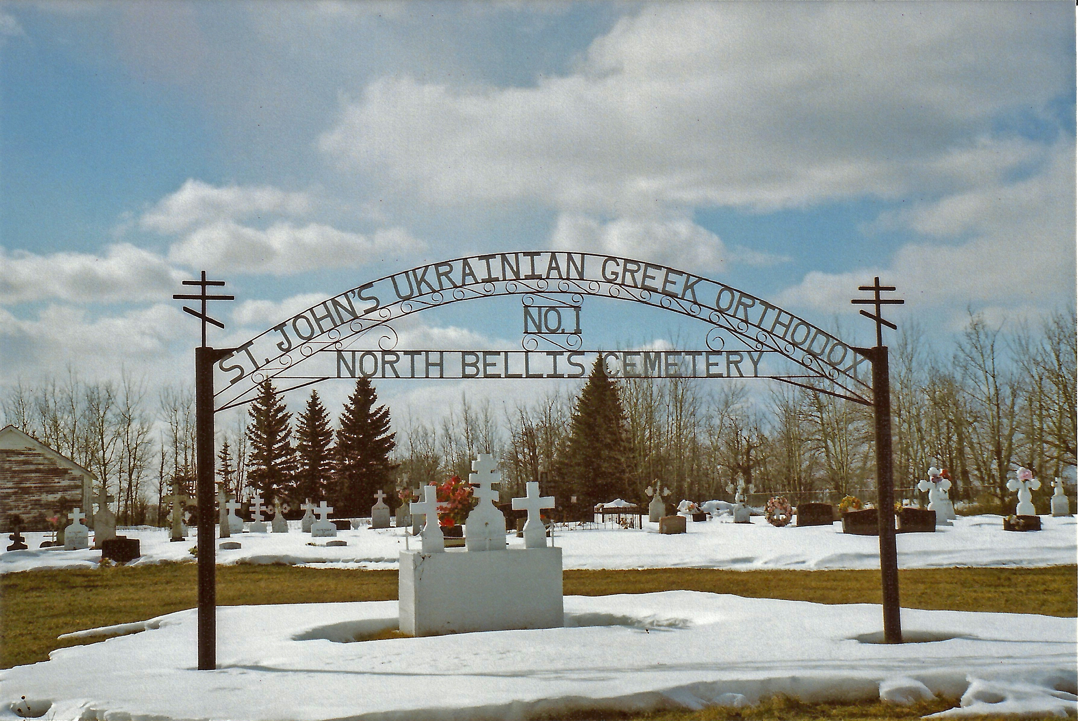 Sign over the entrance to St. John Cemetery, Bellis North. Photo by S. Demchinsky (2013).