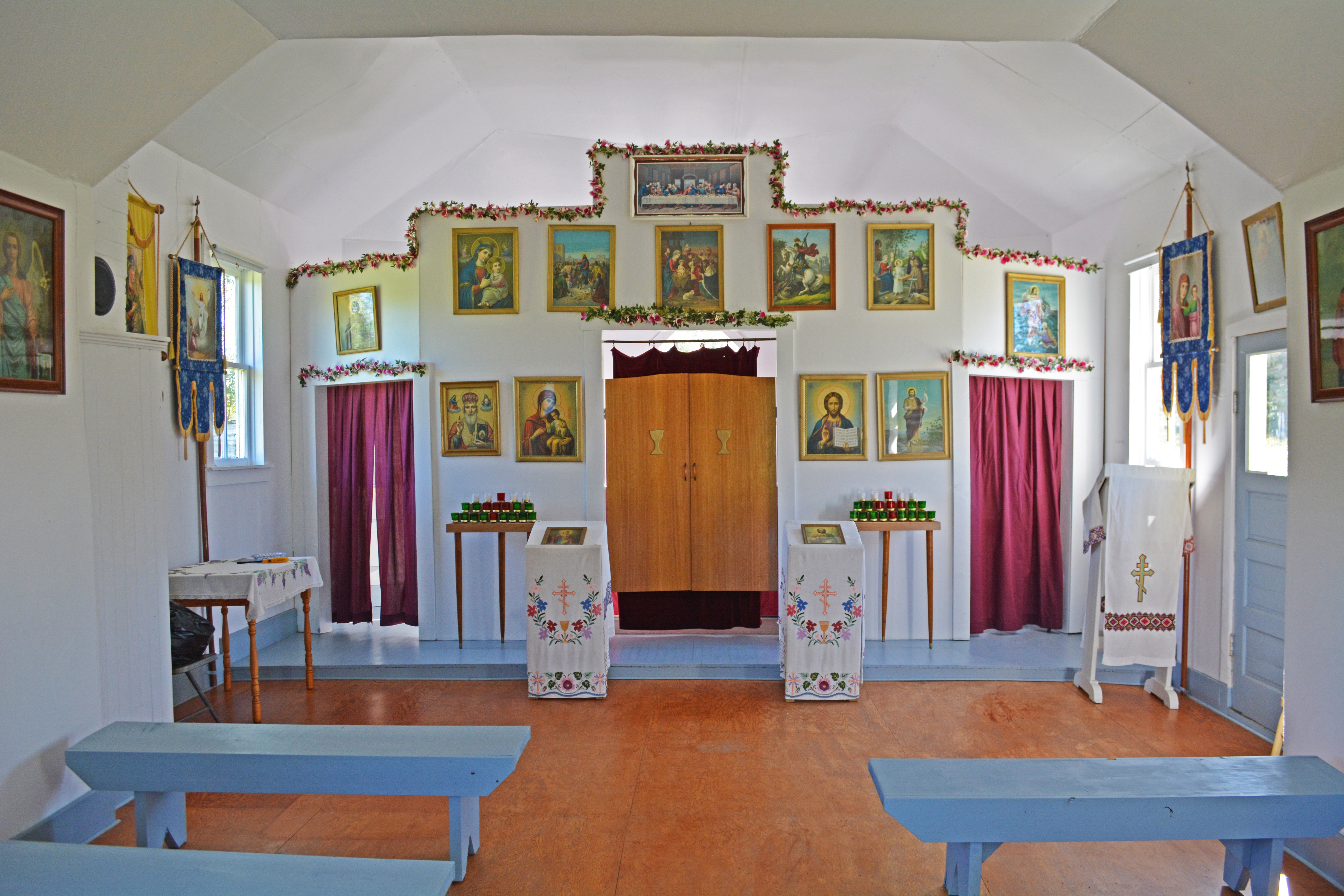 Interior of St. John the Baptist UOC, Bigmeadow, AB. Photo by S. Demchinsky (2017).