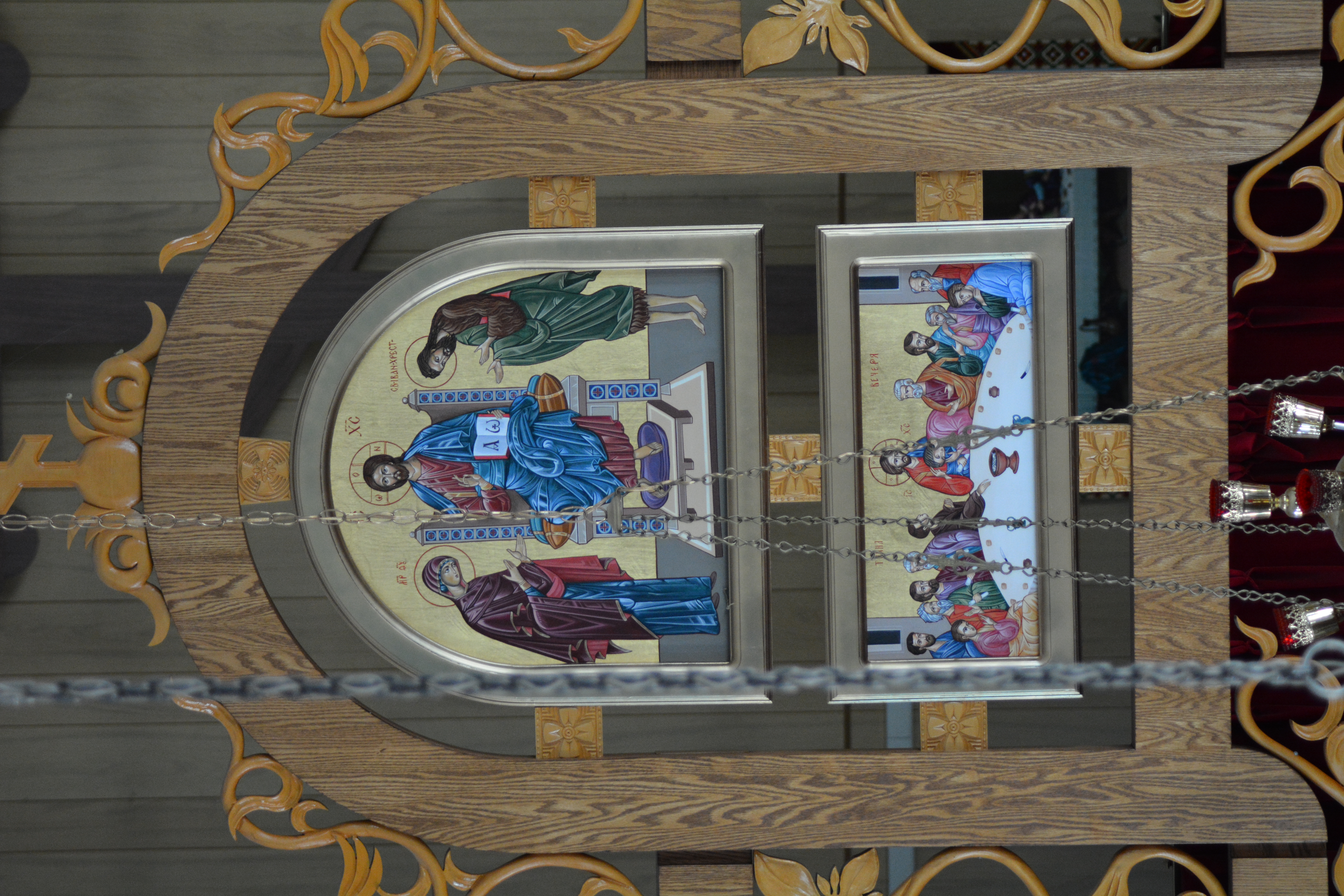 The Diesis and Mystical Supper icons on the iconostas of St. Elias UOC, Bonnyville, AB. Photo by S. Demchinsky (2017).