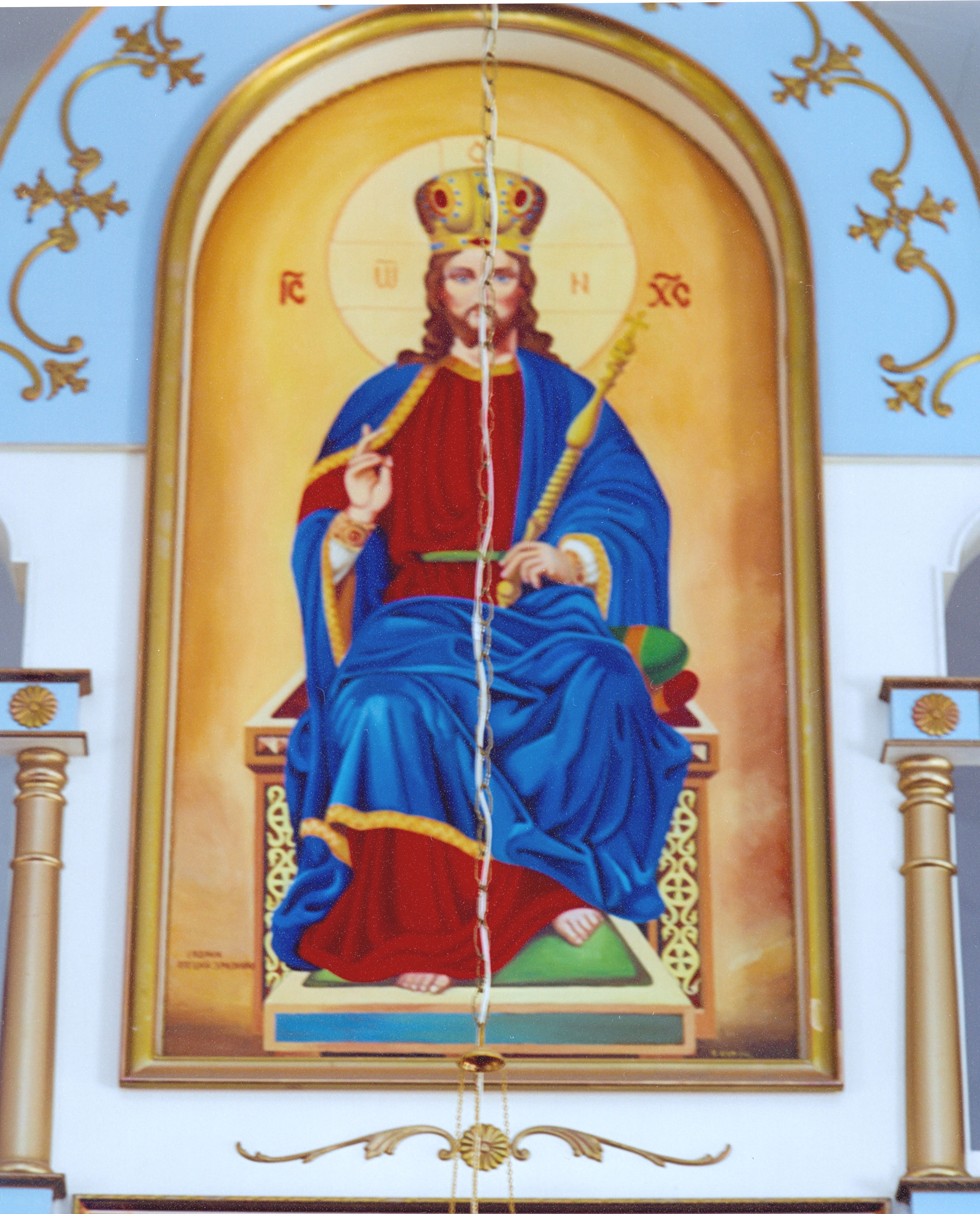 Christ enthroned icon on the iconostas of Holy Trinity UOC at Calmar, AB. Photo by S. Demchinsky (2010).