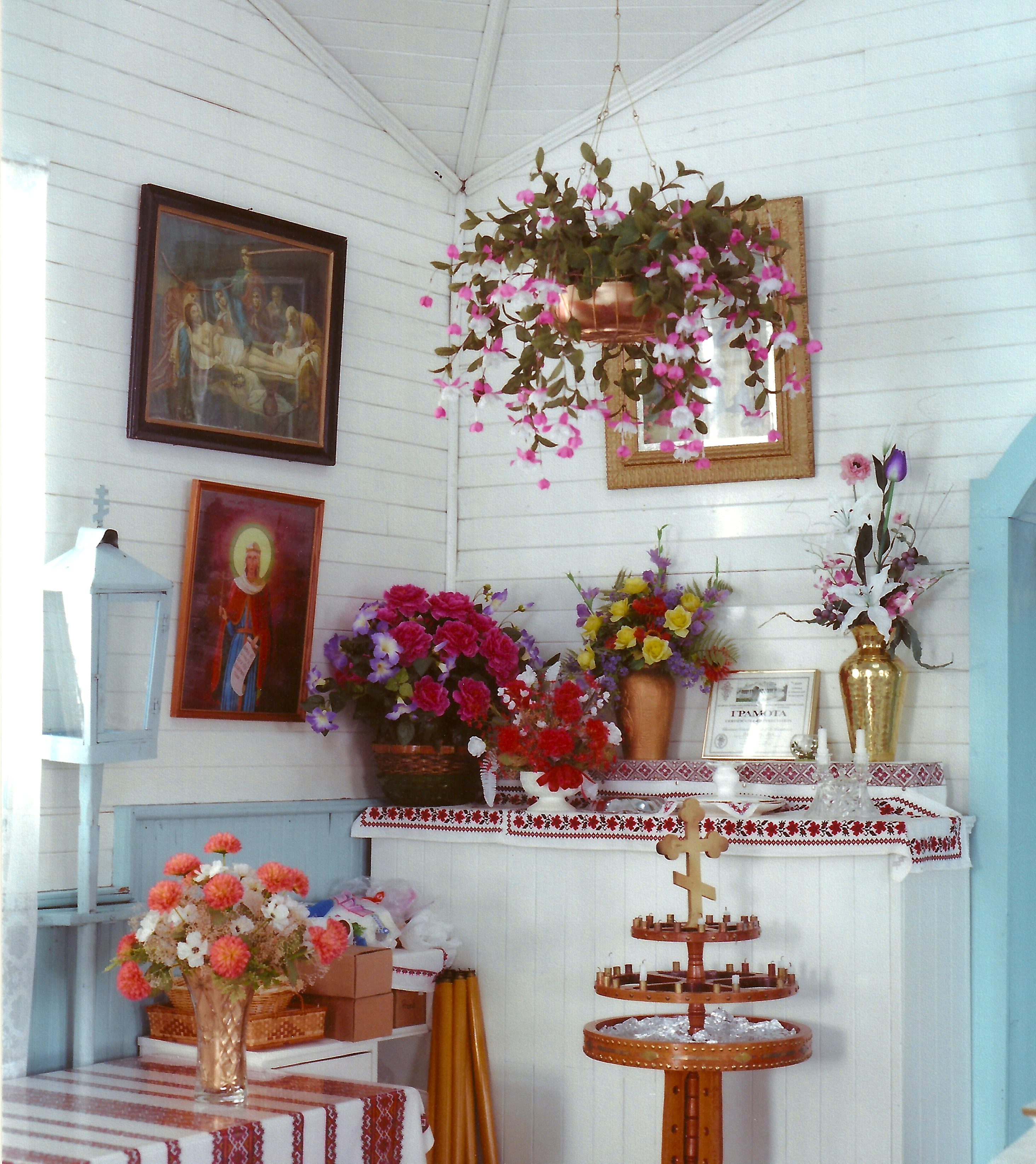 The shrine left of the iconostas in St. Paraskeva UOC, Downing, AB. Photo by S. Demchinsky (2013).