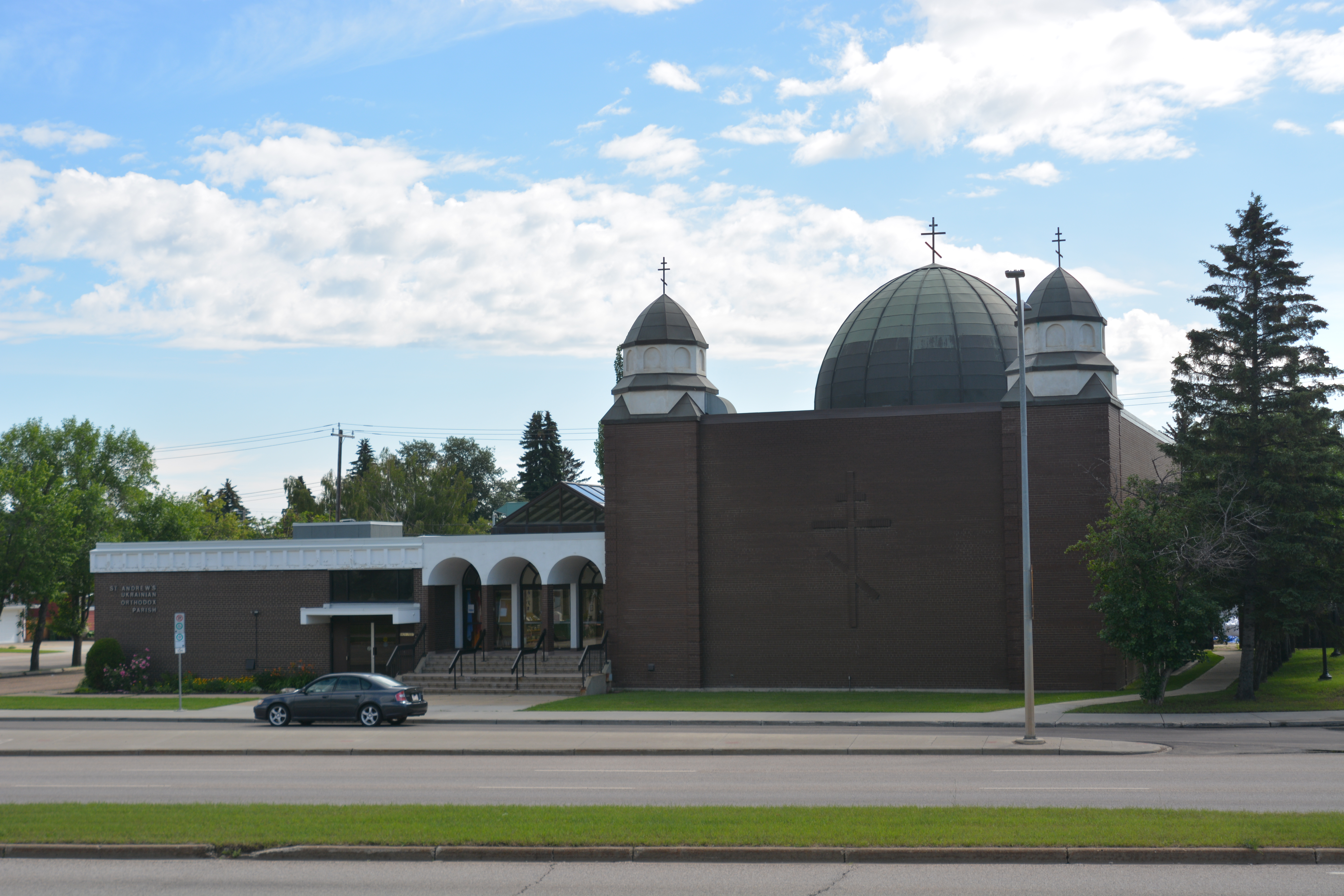 Exterior of St. Andrew UOC, Edmonton, AB. Photo by S. Demchinsky (2023).
