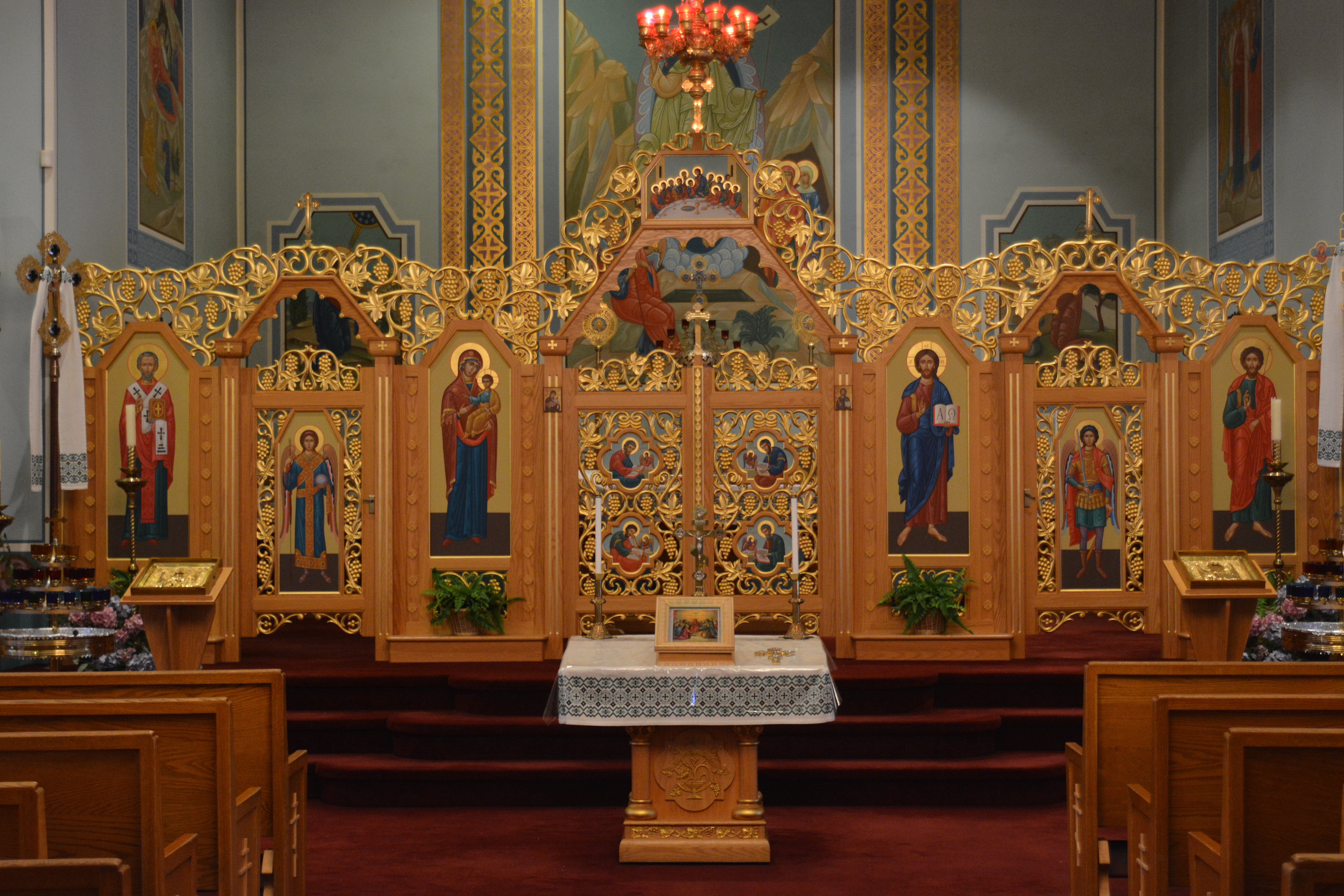 The iconostas of St. Andrew UOC, Edmonton, AB. Photo by S. Demchinsky (2023).