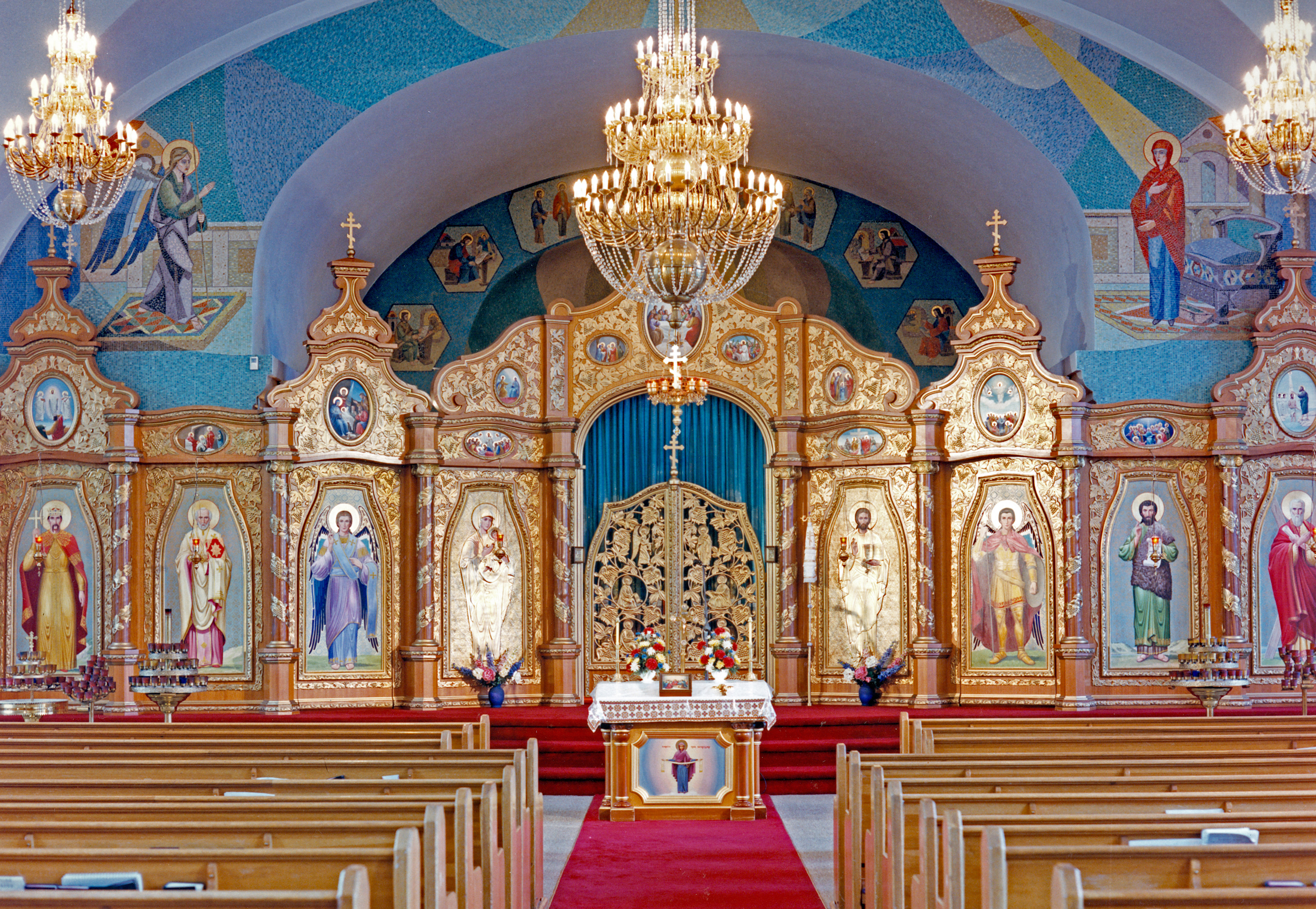 The iconostas of St. John the Baptist Ukrainian Orthodox Cathedral, Edmonton, AB. Photo by S. Demchinsky (1998).