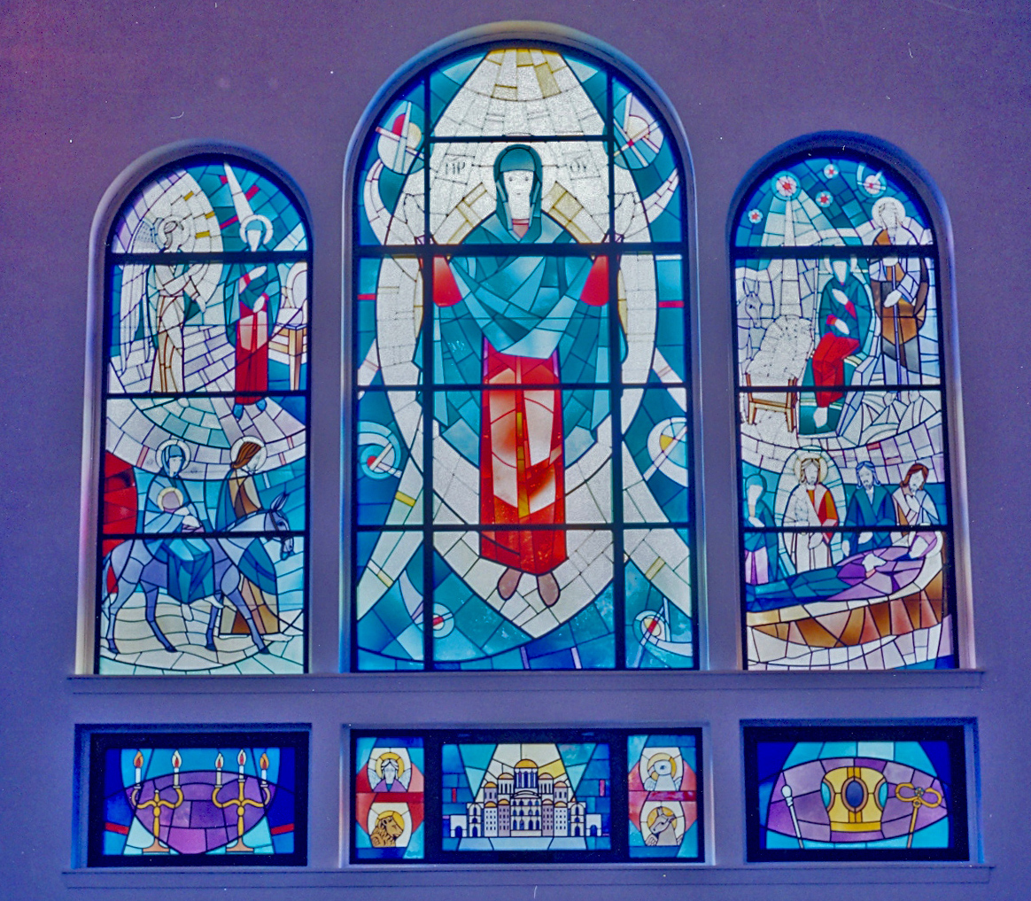 A stained-glass window in St. John the Baptist Ukrainian Orthodox Cathedral, Edmonton, AB. Photo by S. Demchinsky (1998).