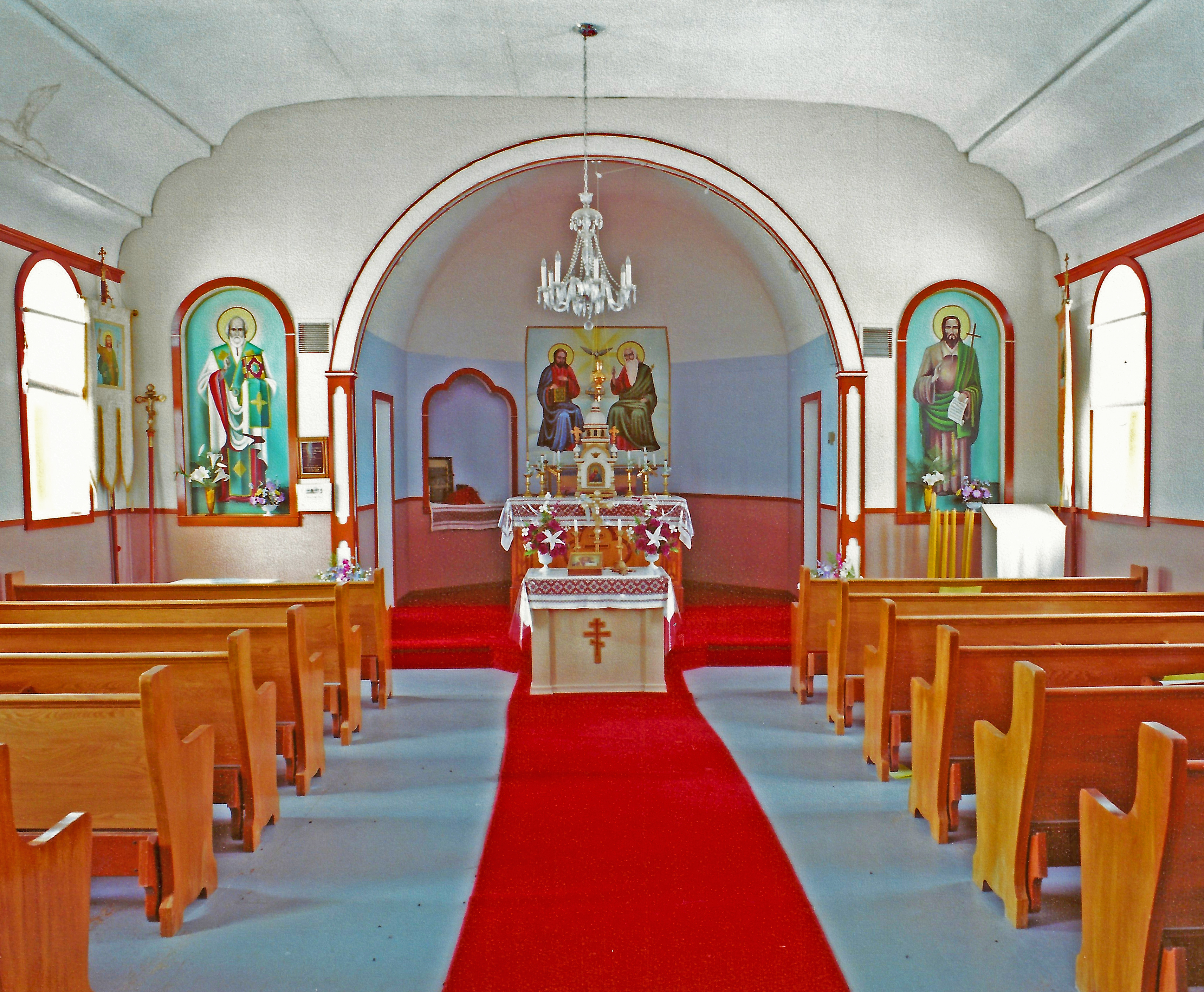 Interior of St. John the Baptist UOC, Innisfree, AB. Photo by S. Demchinsky (2013).