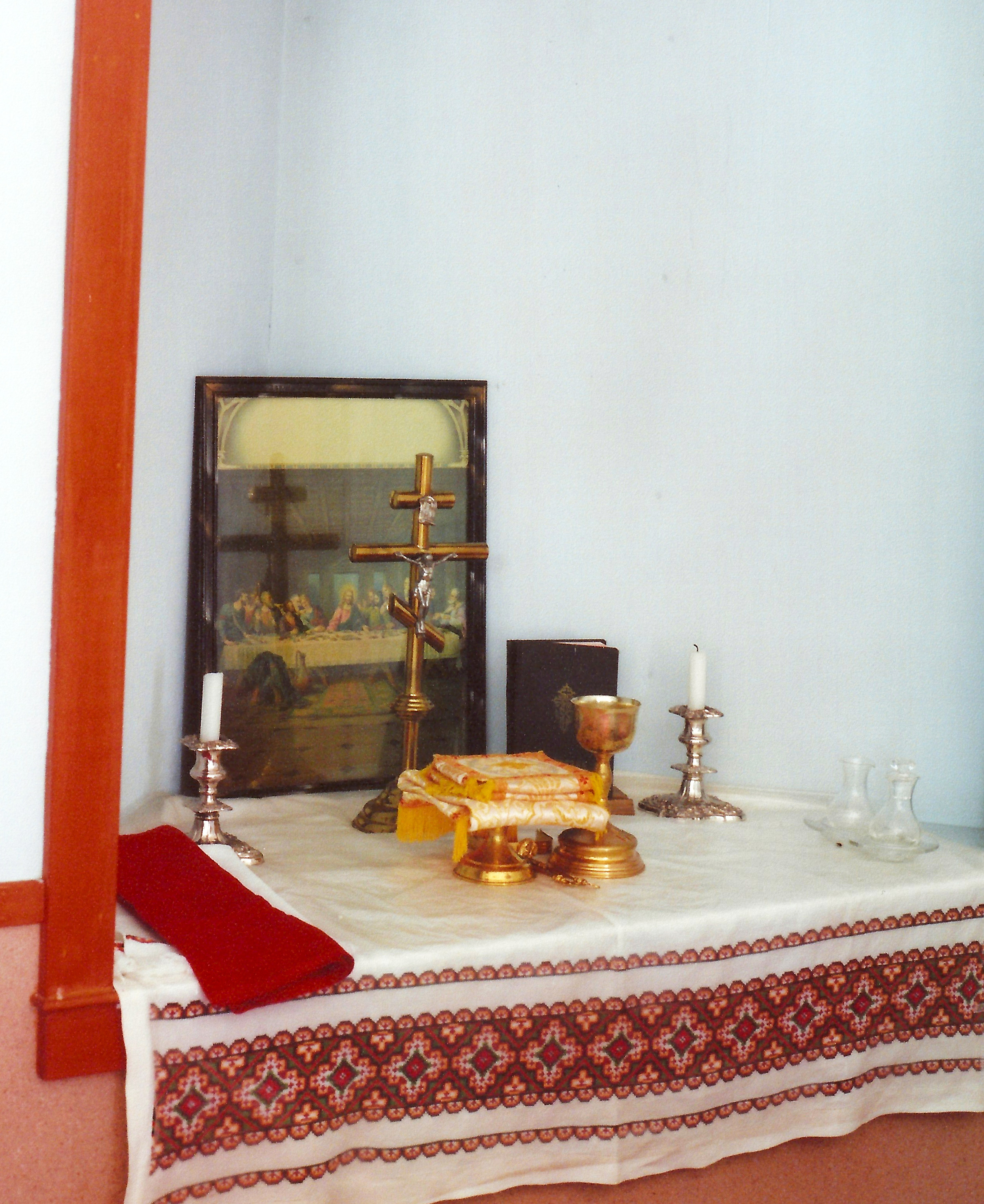 The proskomidia table of St. John the Baptist UOC, Innisfree, AB. Photo by S. Demchinsky (2013).