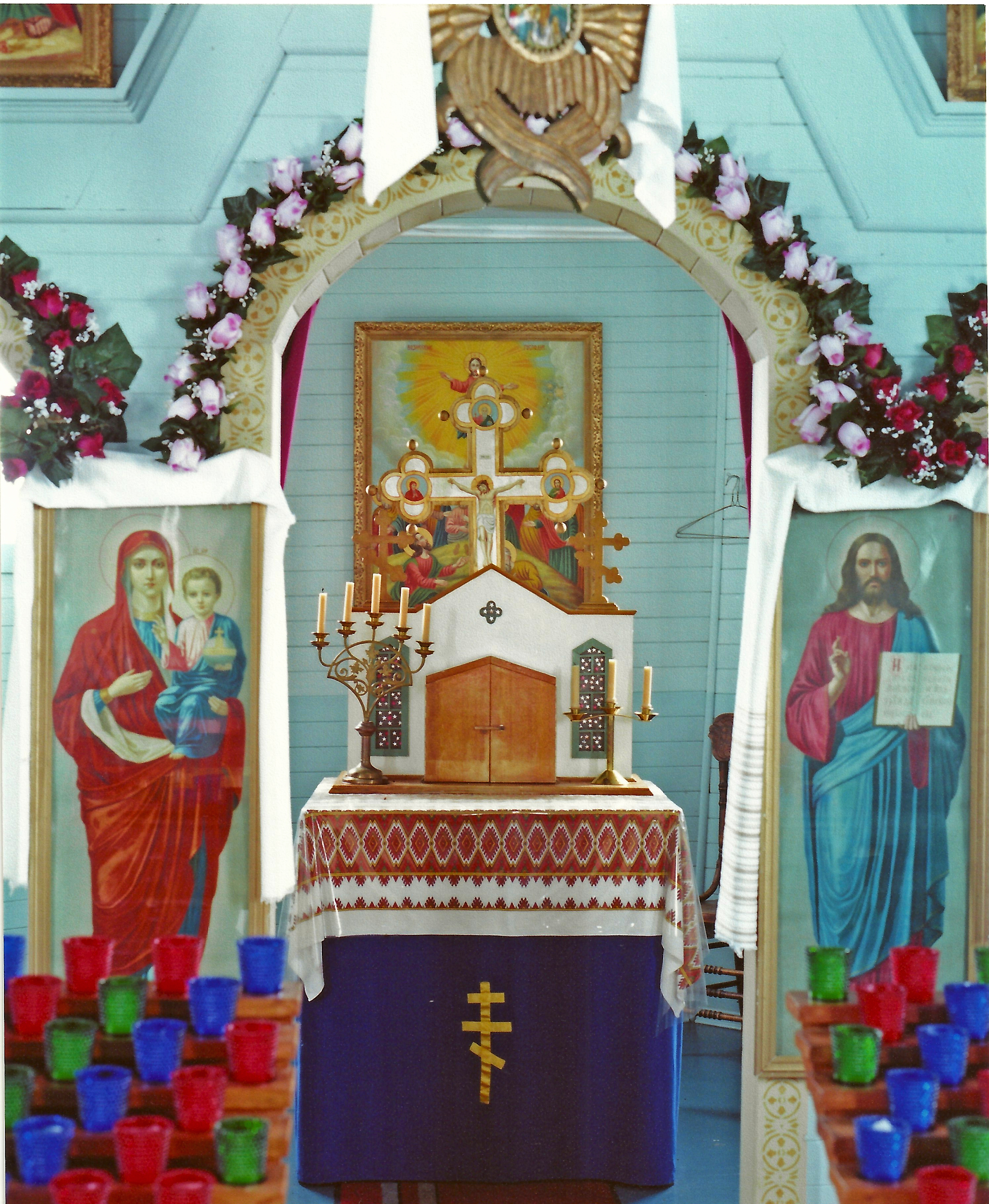 The altar as seen through the Royal Doors in Holy Ascension UOC, Ispas, AB. Photo by S. Demchinsky (2013).