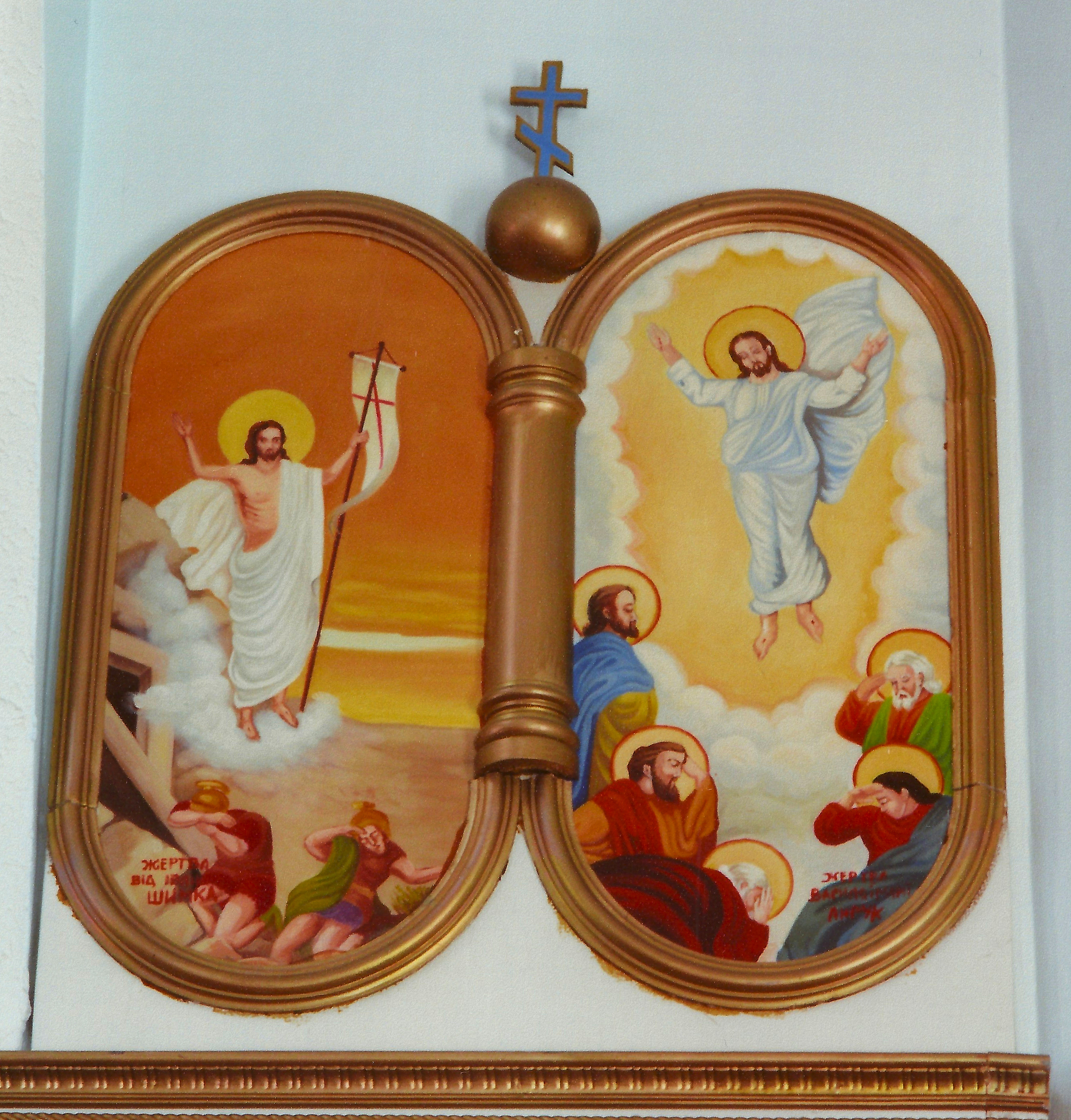 Two icons from the festal icon tier on the iconostas of Holy Trinity UOC, Kahwin, AB. Photo by S. Demchinsky (2013).