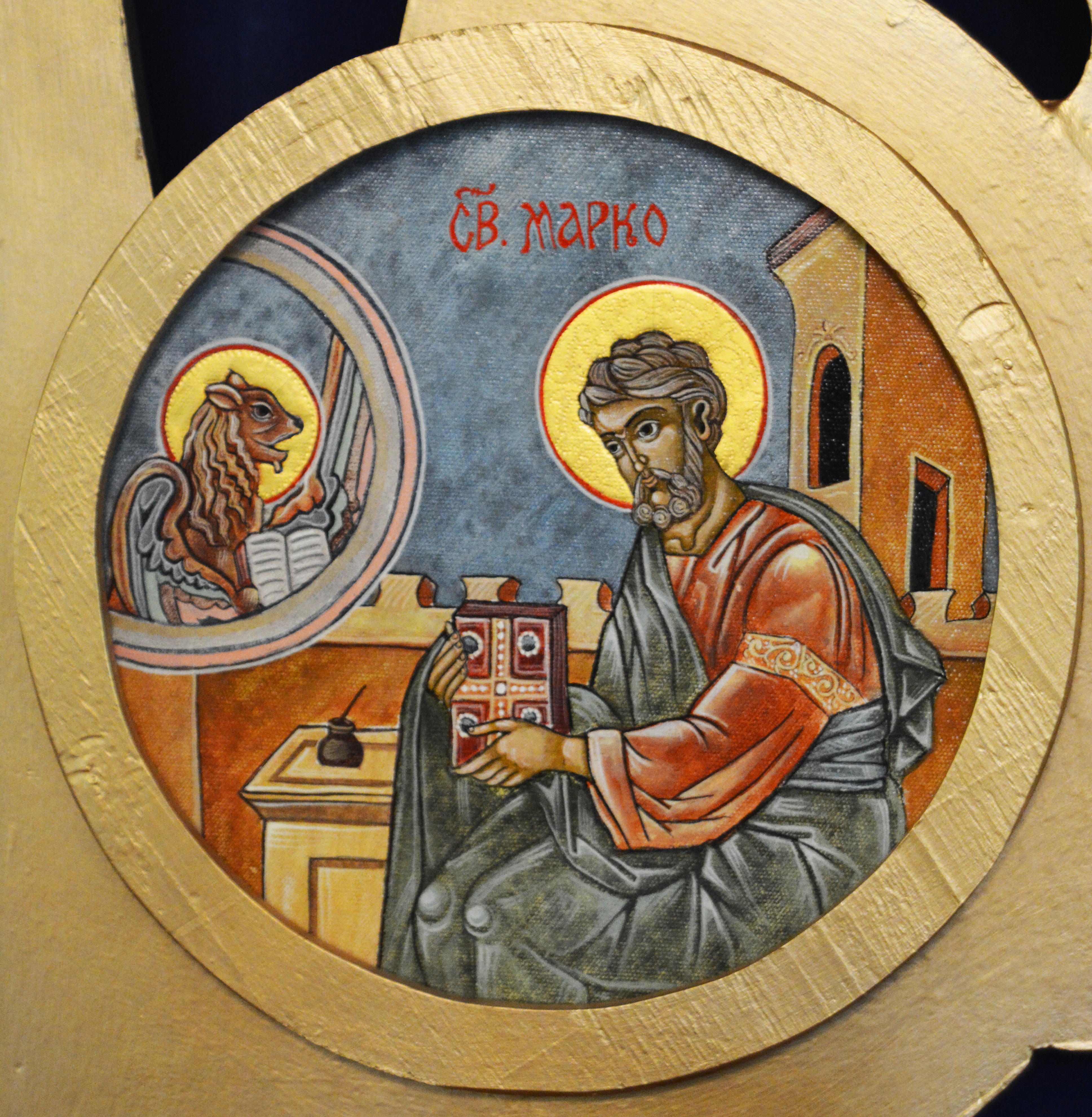 Icon of the Evangelist Mark on the Royal Doors of Sts. Peter & Paul UOC in Lethbridge, AB. Photo by S. Demchinsky (2024).