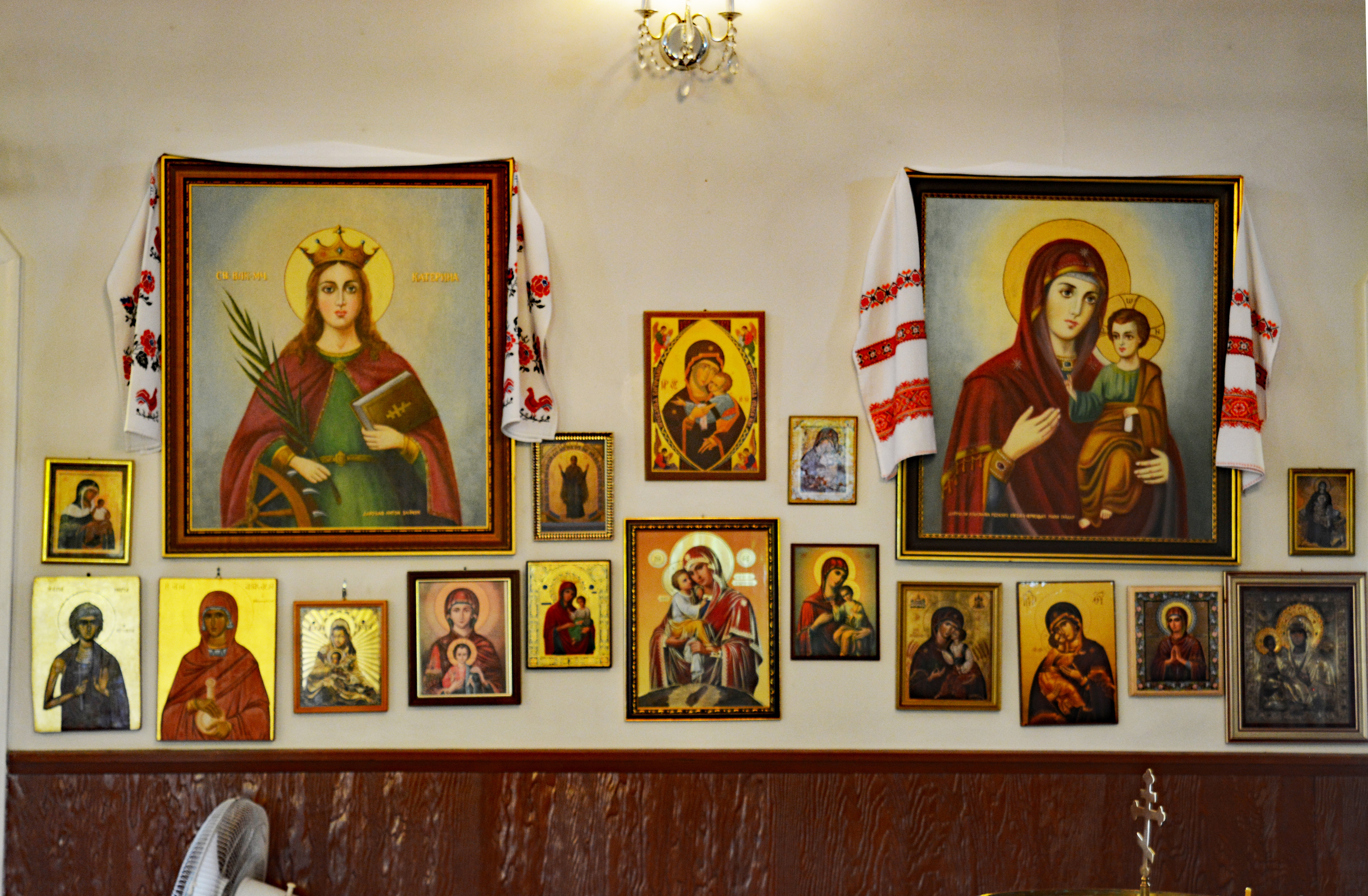 The walls are covered in icons in Sts. Peter & Paul UOC in Lethbridge, AB. Photo by S. Demchinsky (2024).