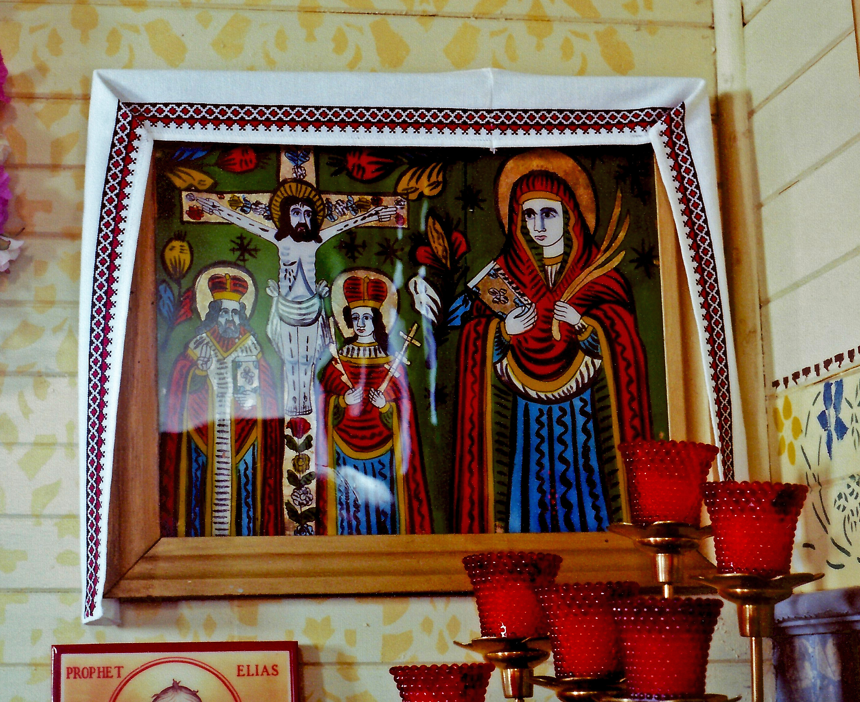 An icon of in the Bukovynian folk style in St. Elias UOC near Luzan (Toporiwtzi), Alberta. Photo by S. Demchinsky (2013).