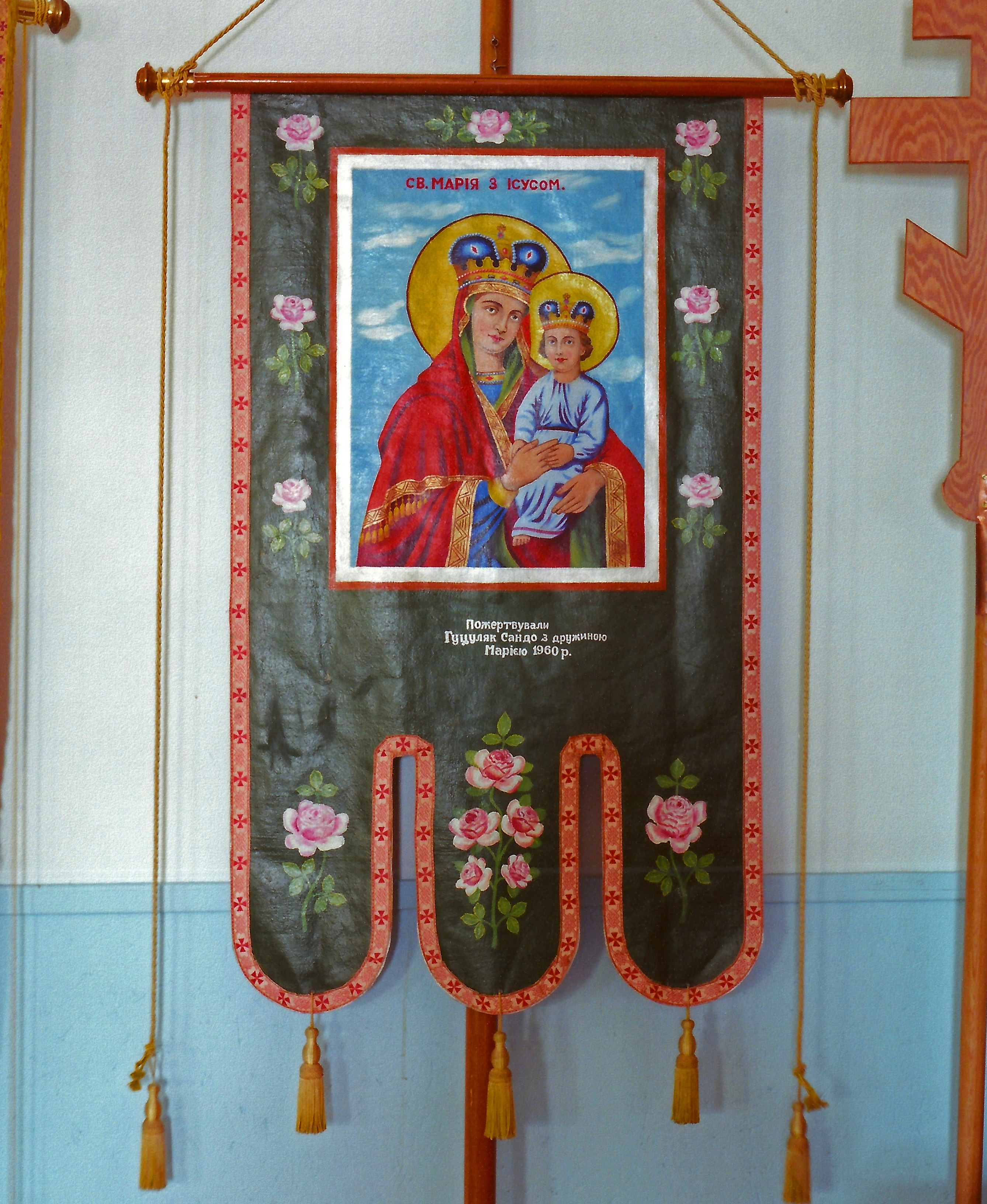 The icon of the Theotokos on a banner in St. Demitrius UOC, Luzan, AB. Photo by S. Demchinsky (2013).