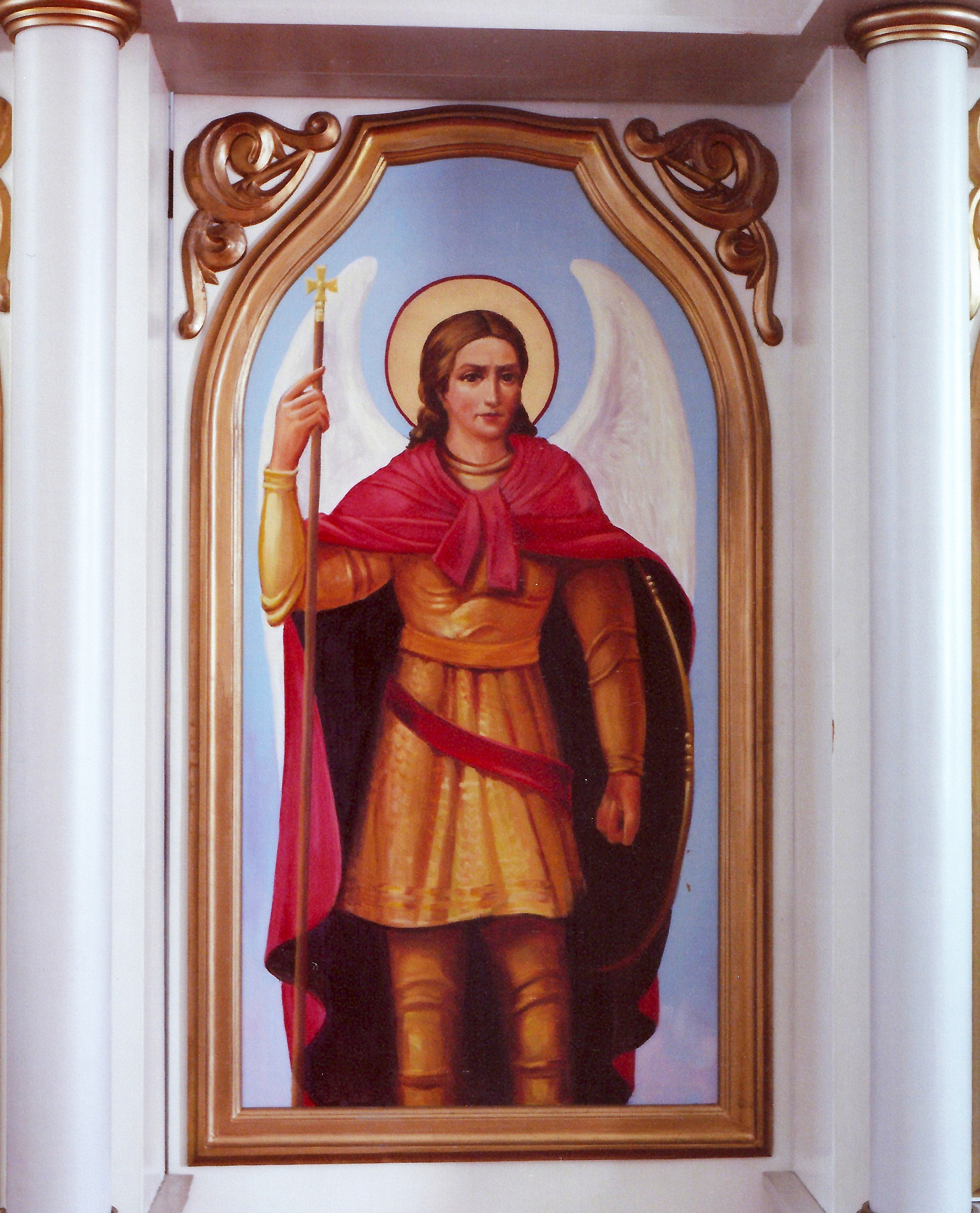 The icon of St. Michael on the iconostas of Holy Trinity UOC in Myrnam, AB. Photo by S. Demchinsky (2013).