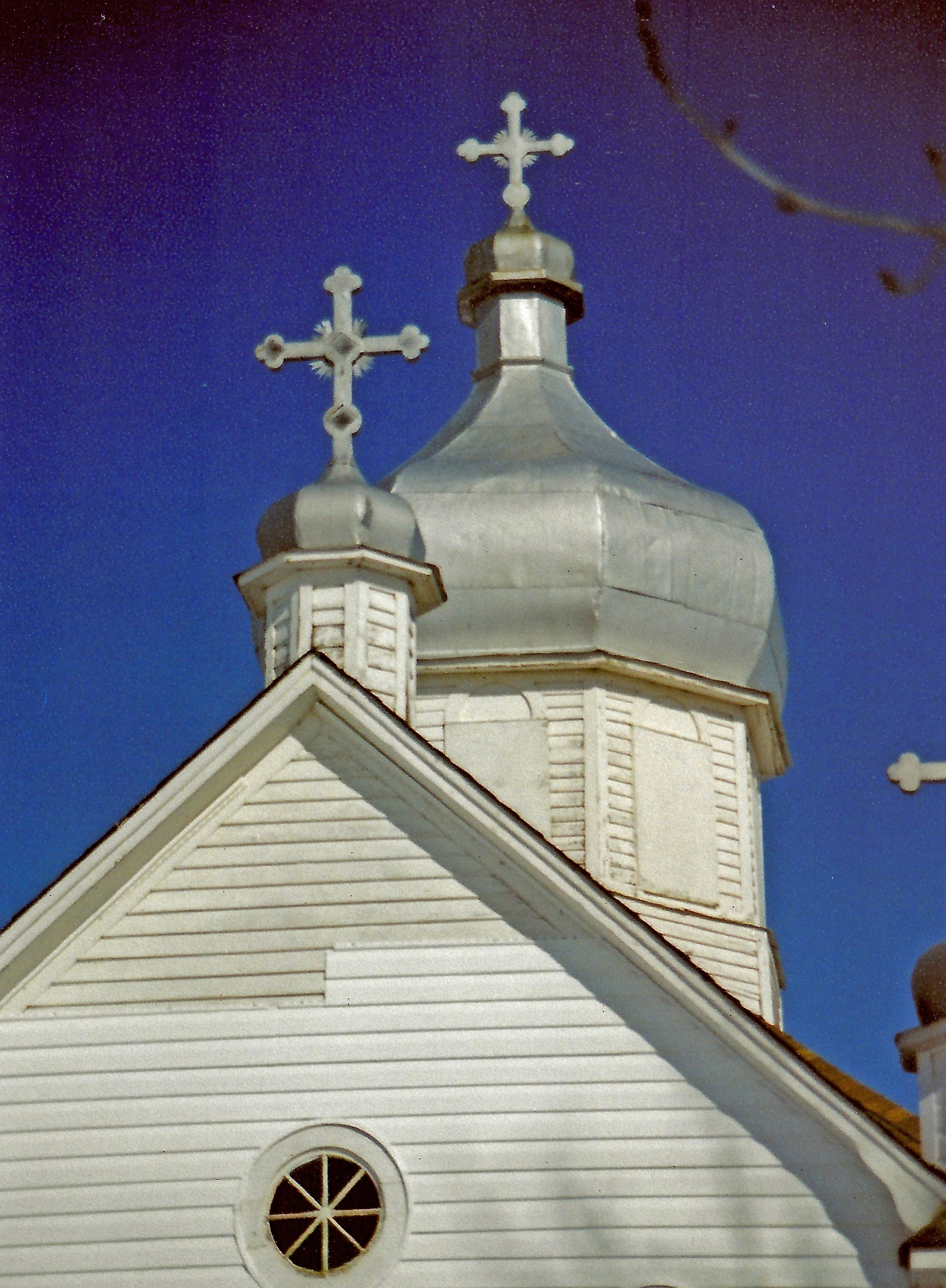 A detail of the domes of Holy Ascension UOC in Pruth, AB. Photo by S. Demchinsky (2013).