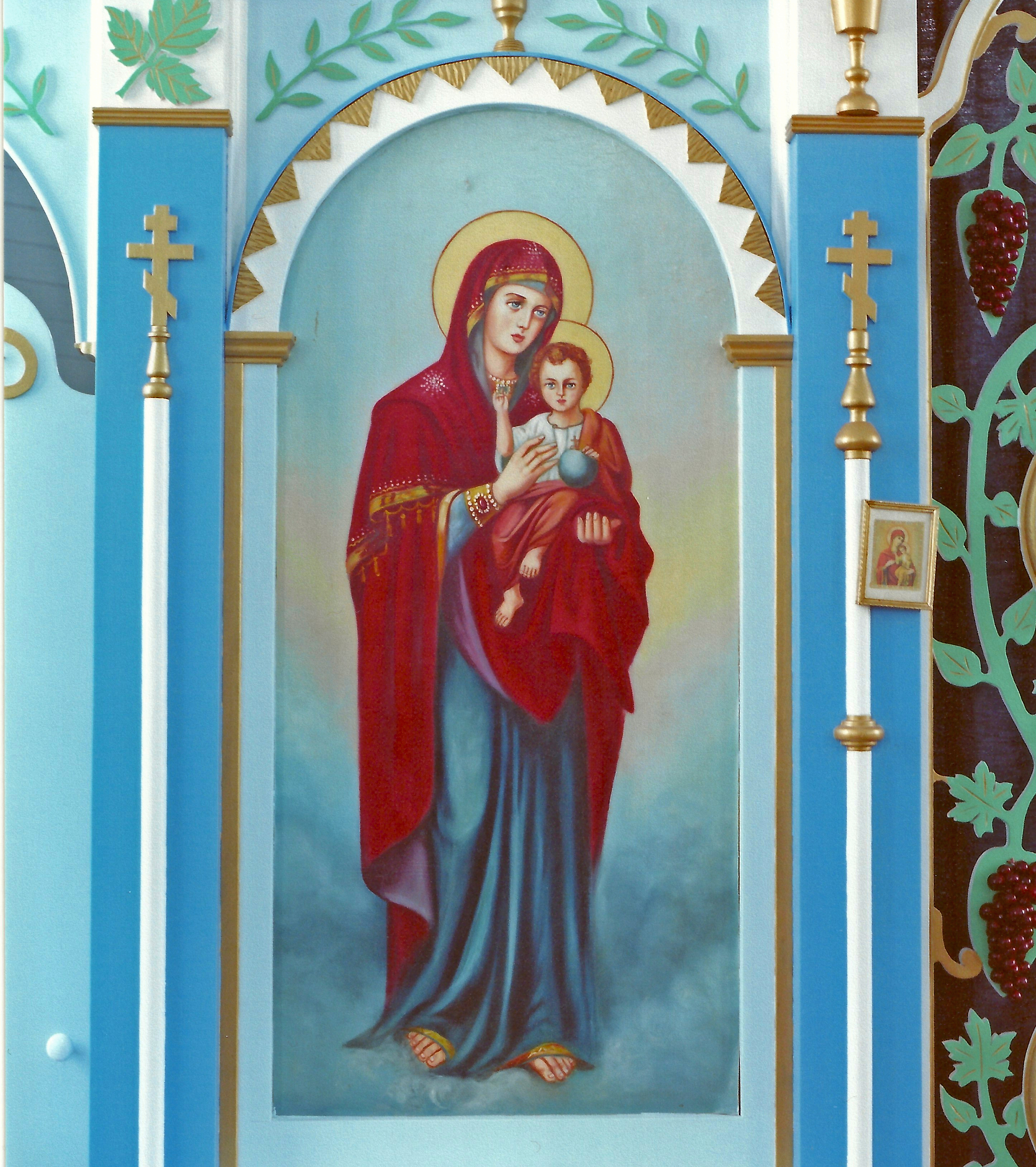 The Theotokos on the iconostas of Sts. Peter & Paul UOC in Sarrail, AB. Photo by S. Demchinsky (2013).