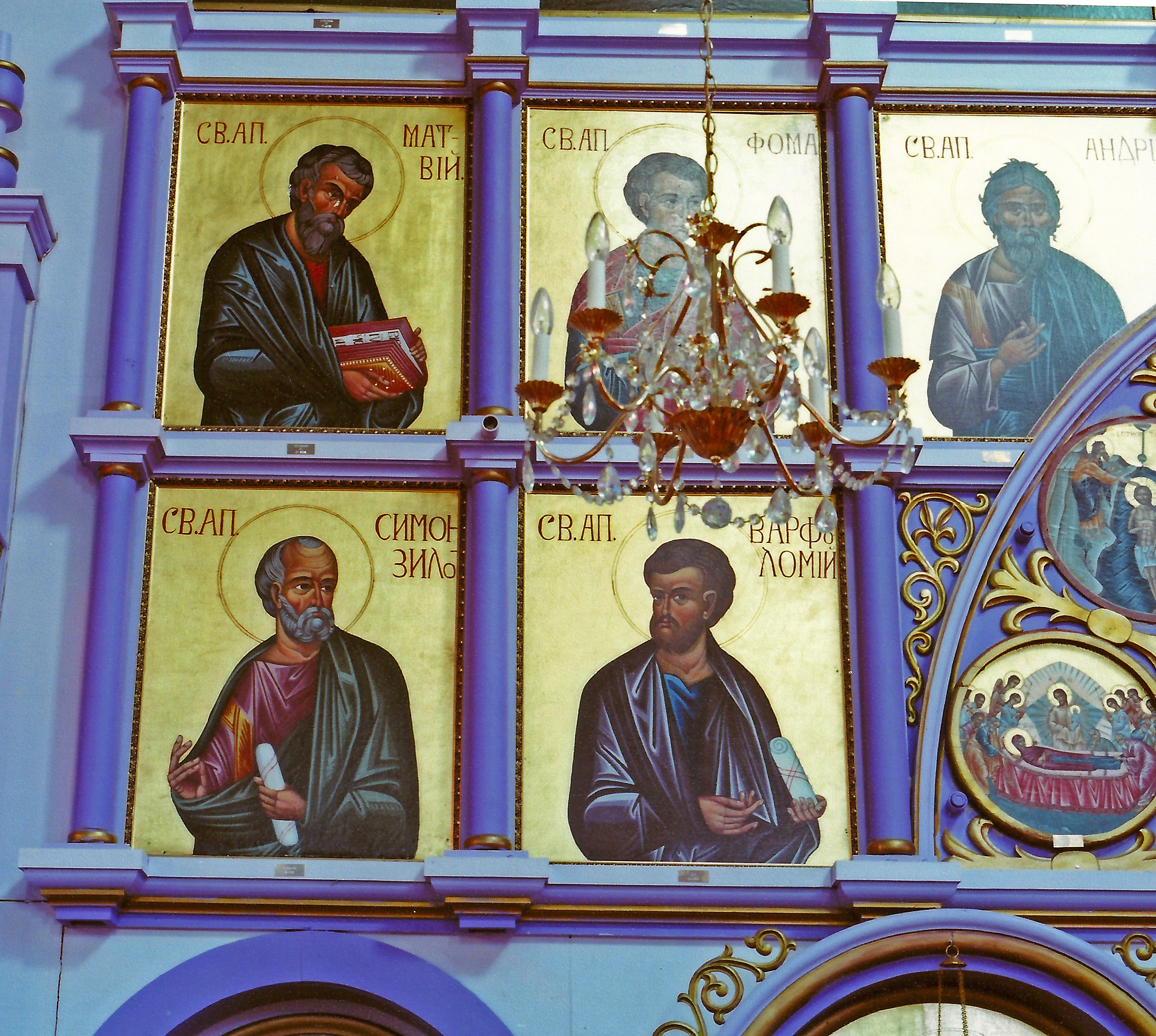 A portion of the apostles tier of the the iconostas in Holy Ascension UOC, Smokey Lake, AB. Photo by S. Demchinsky (2013).