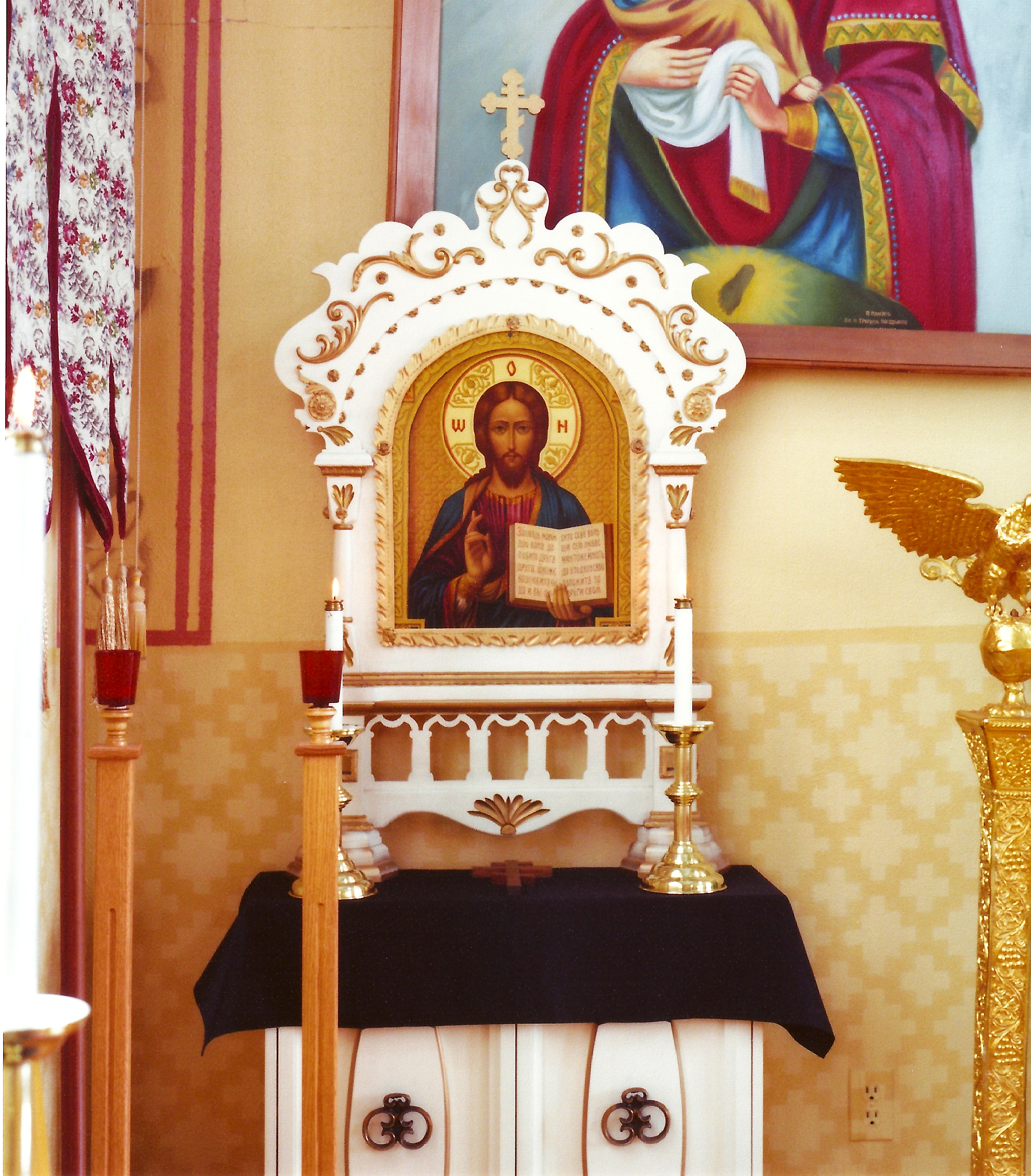 The shrine left of the iconostas of Holy Trinity UOC in Spedden, AB. Photo by S. Demchinsky (2013).