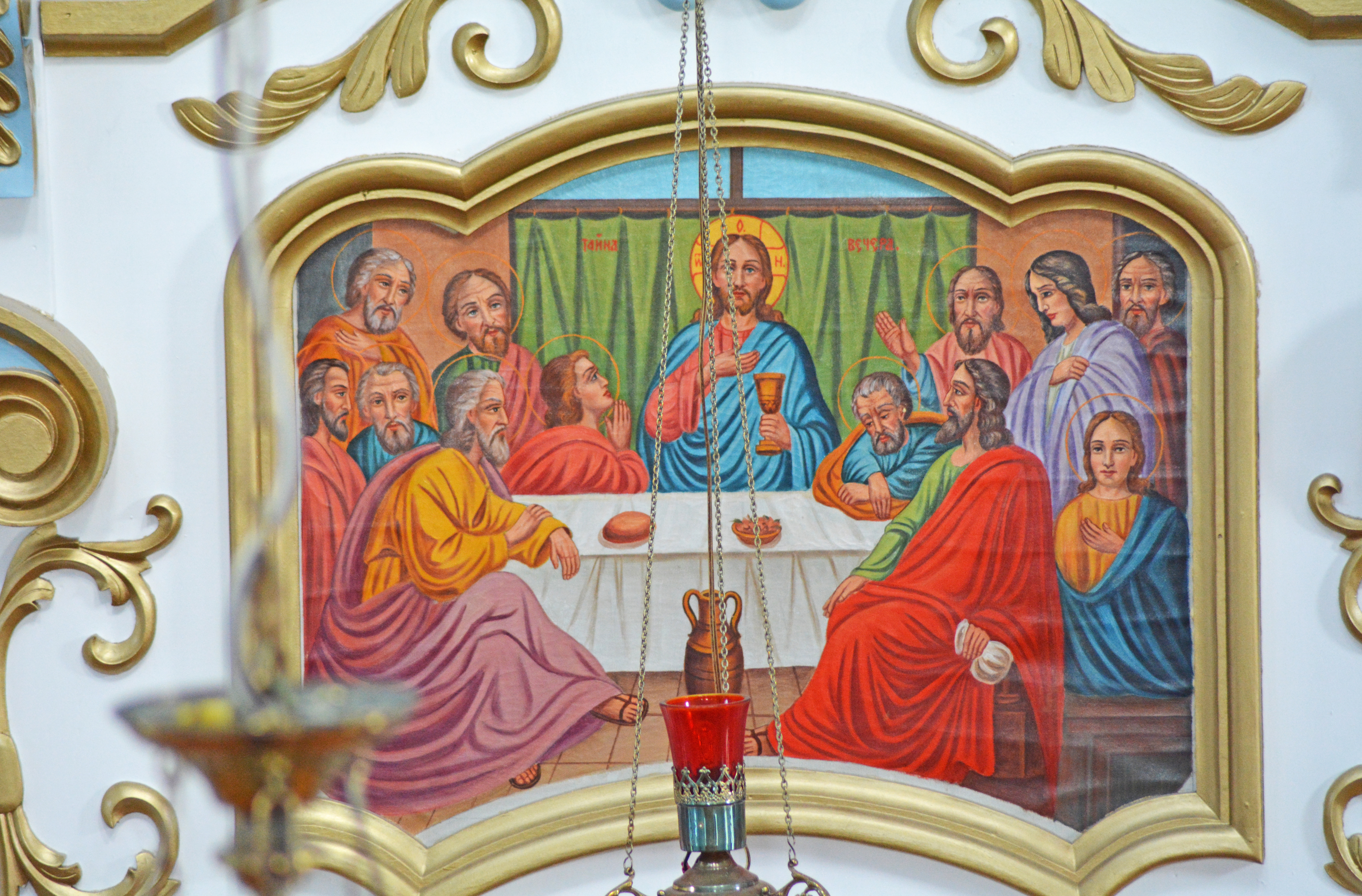The "Mystical Supper" icon on the iconostas of Protection of St. Mary UOC, St. Paul, AB. Photo by S. Demchinsky (2017).