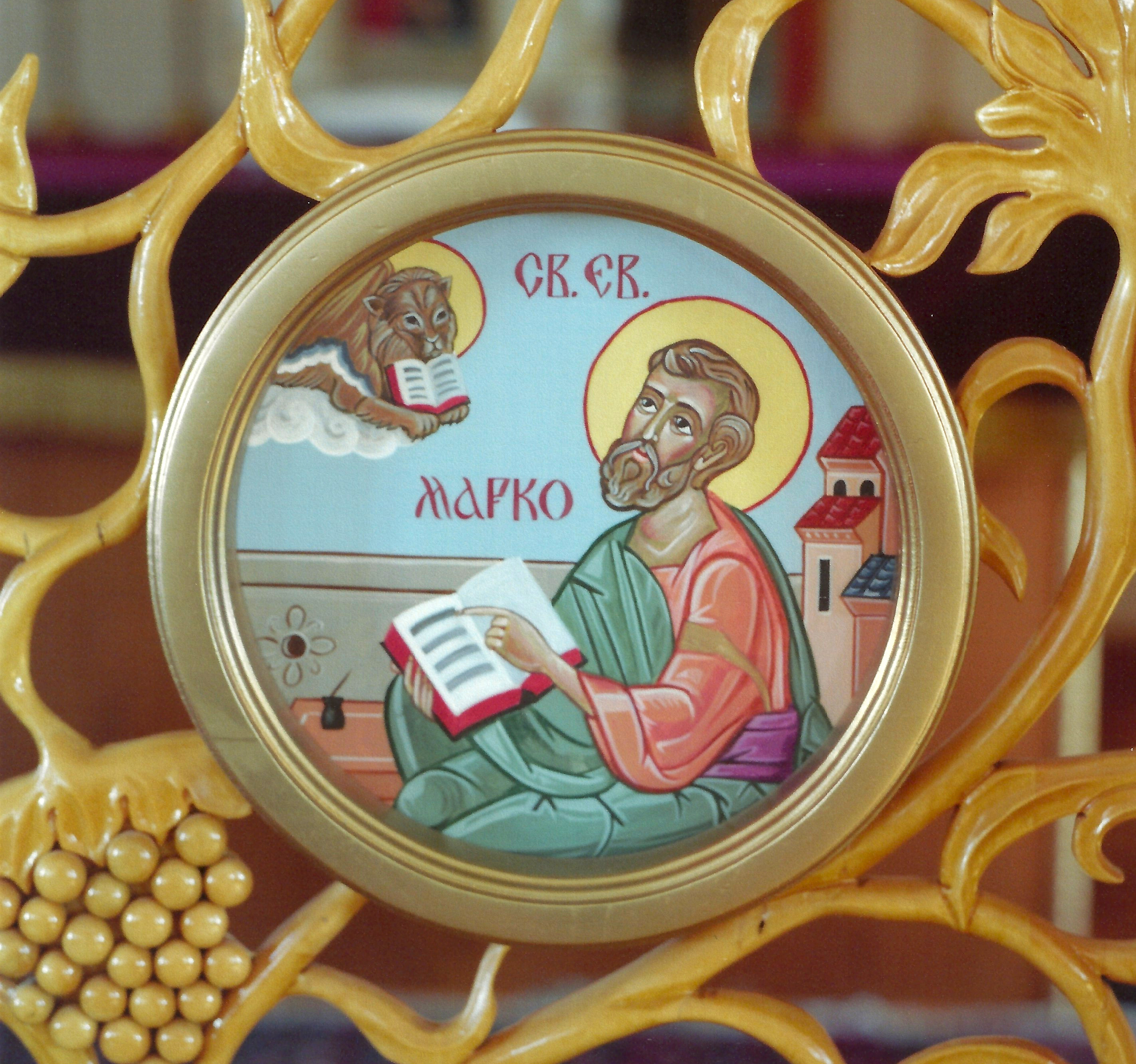 The Evangelist Mark on the Royal Doors of Sts. Peter & Paul UOC at Thorhild, AB. Photo by S. Demchinsky (2013).
