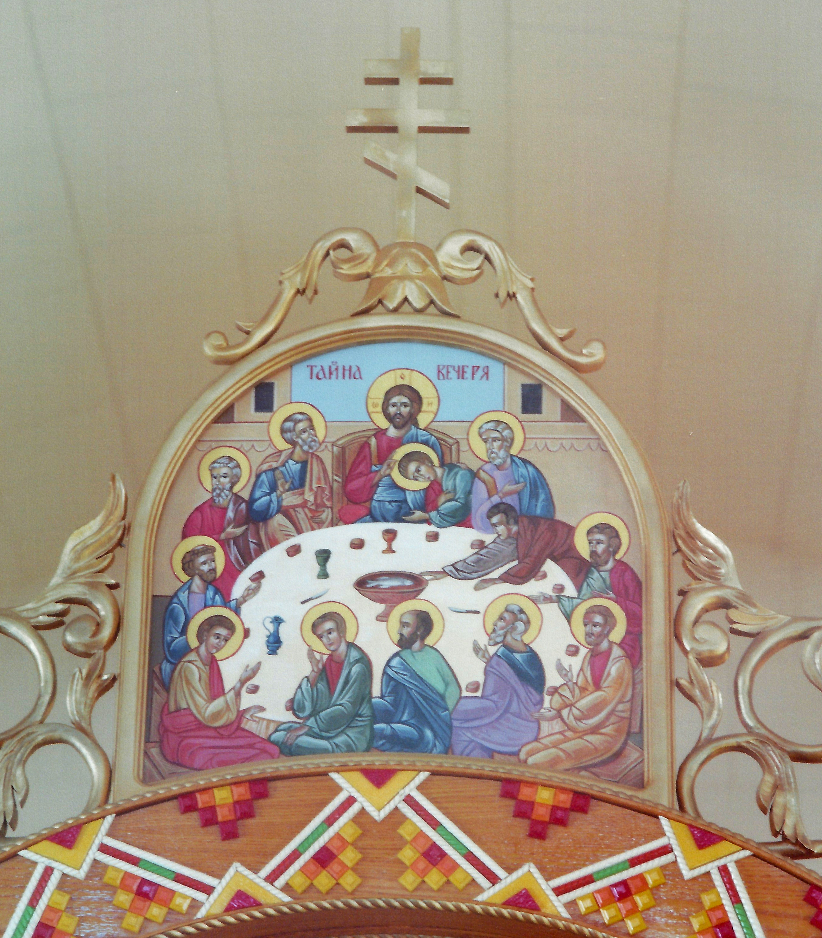 The "Mystical Supper" icon over the Royal Doors of Sts. Peter & Paul UOC at Thorhild, AB. Photo by S. Demchinsky (2013).