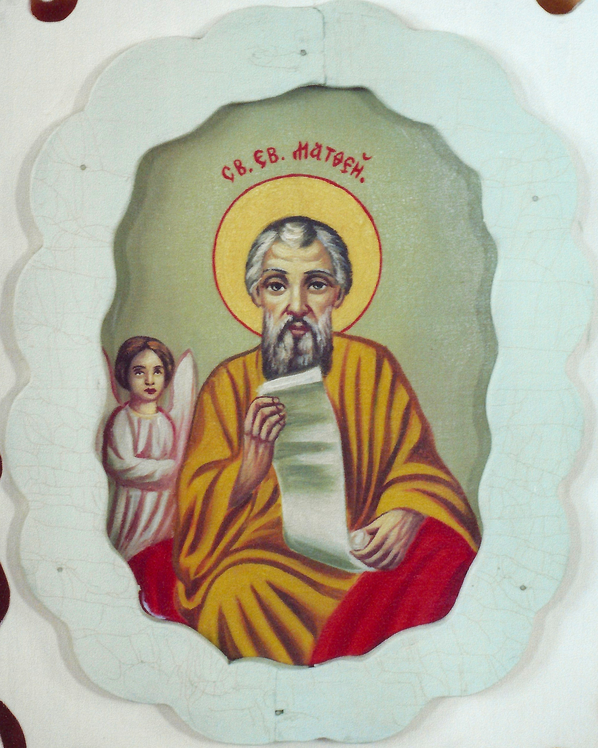 St. Matthew on the Royal Doors of the iconostas of Sts. Peter & Paul UOC at Thorsby, AB. Photo by S. Demchinsky (2013).