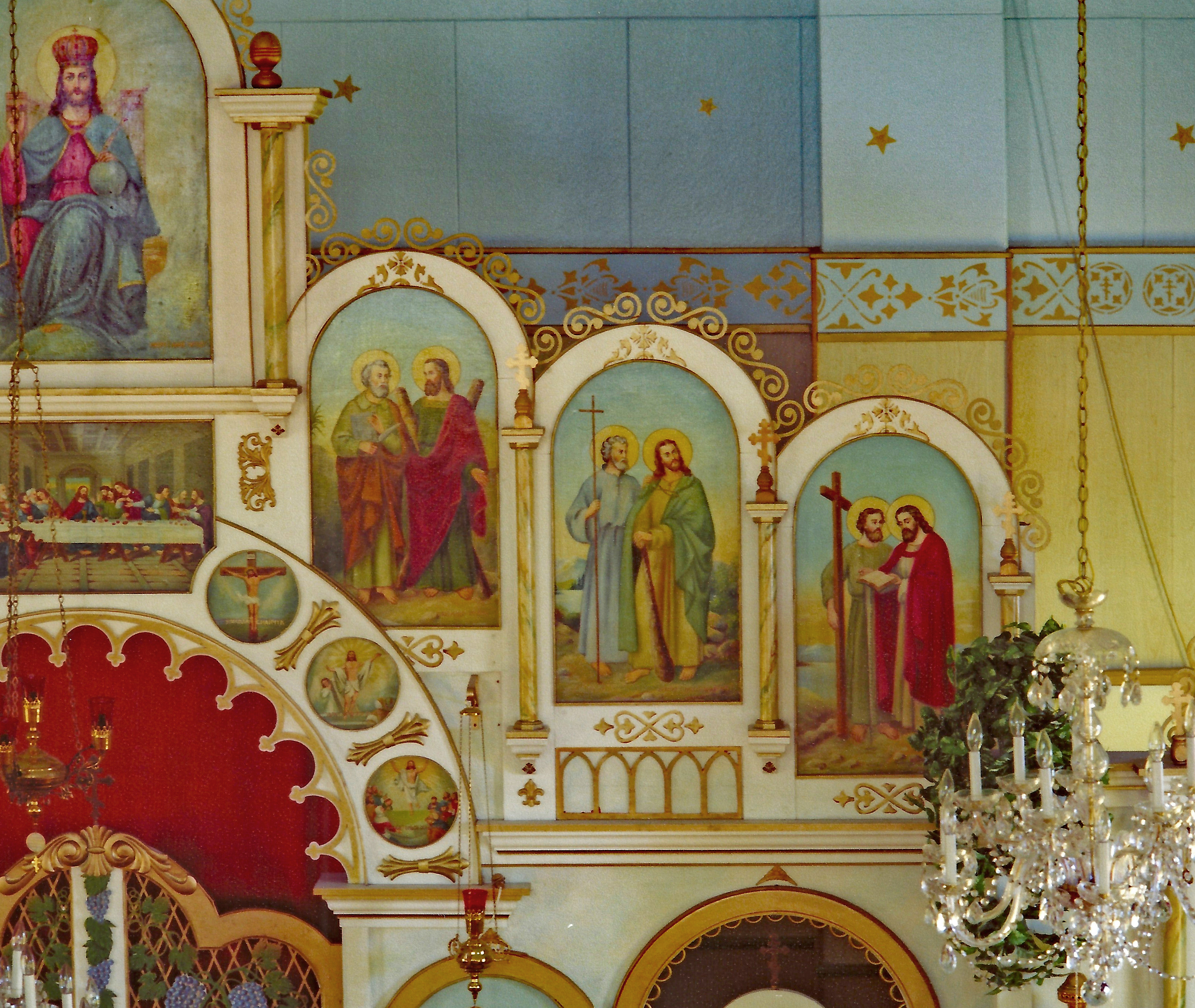 A portion of the apostles tier of the iconostas of Holy Trinity UOC in Two Hills, AB. Photo by S. Demchinsky (2013).