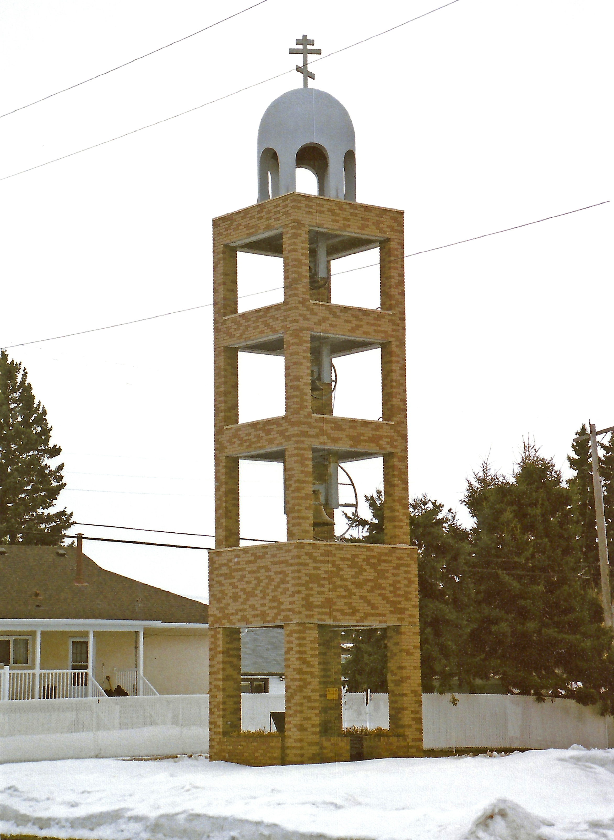The belfry of St. Volodymyr UOC in Vegreville, AB. Photo by S. Demchinsky (2013).