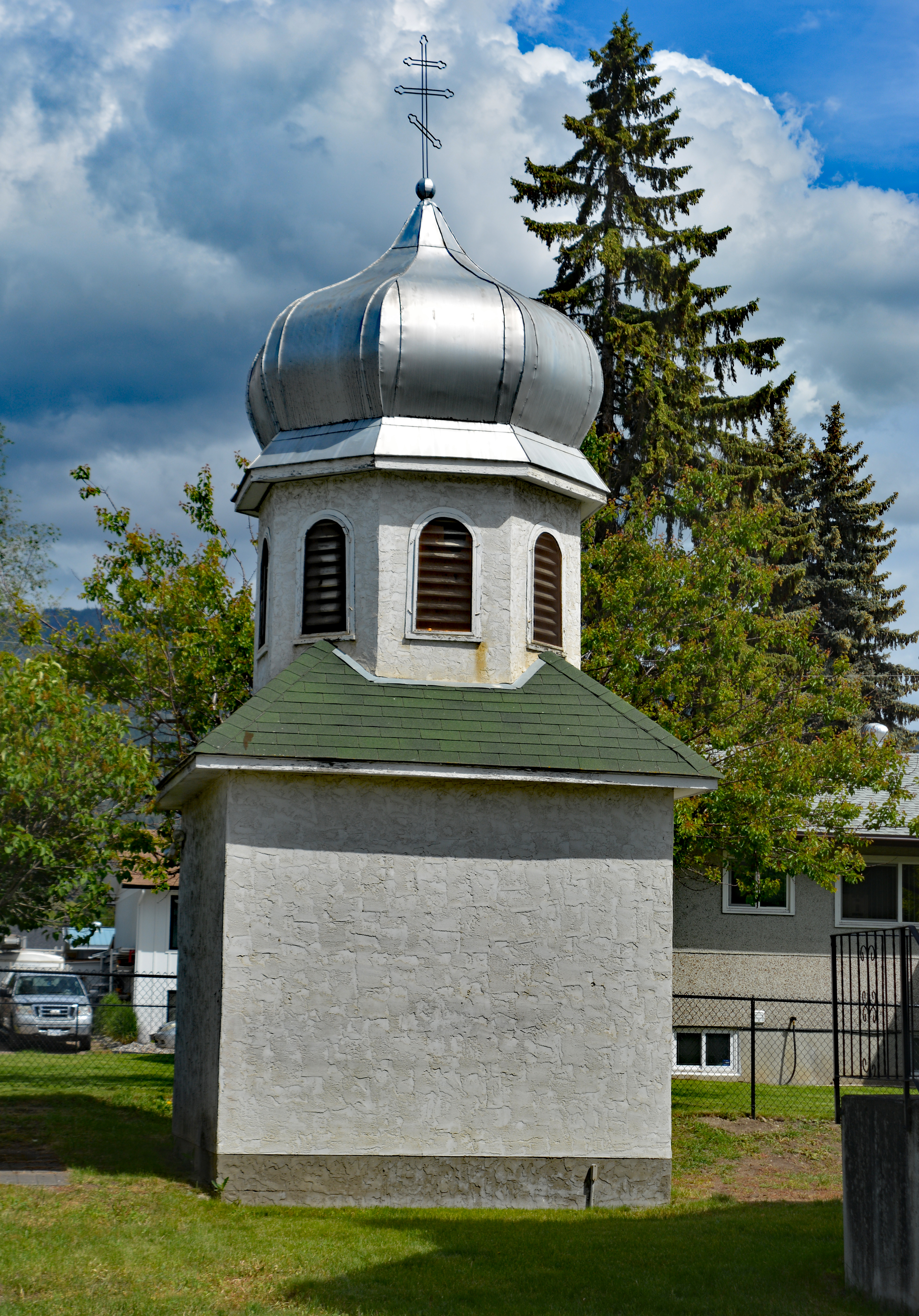 The belfry of Dormition of St. Mary UOC in Vernon, BC. Photo by S. Demchinsky (2024).