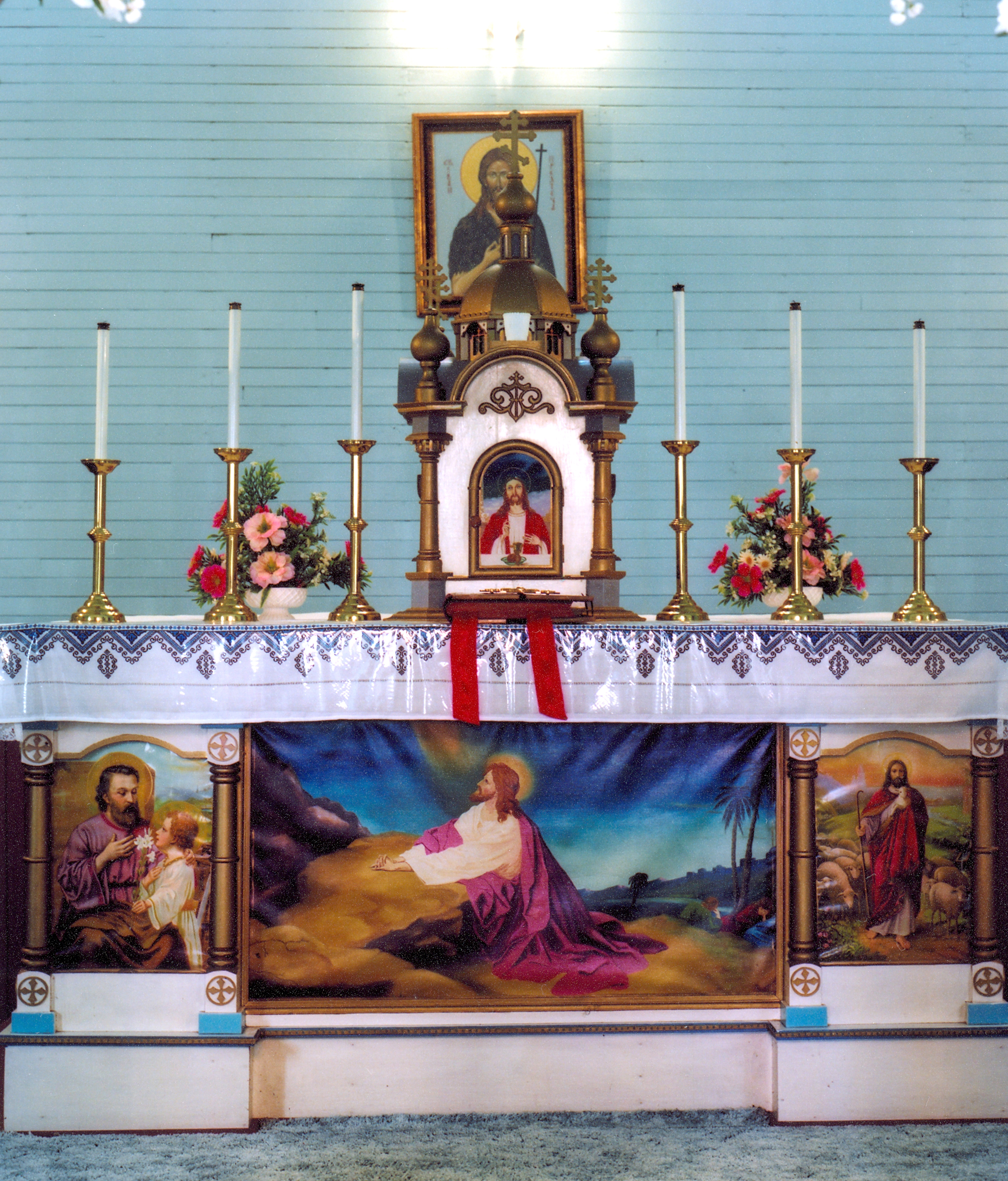 Image of the altar of St. John the Baptist Church, Garland, MB.