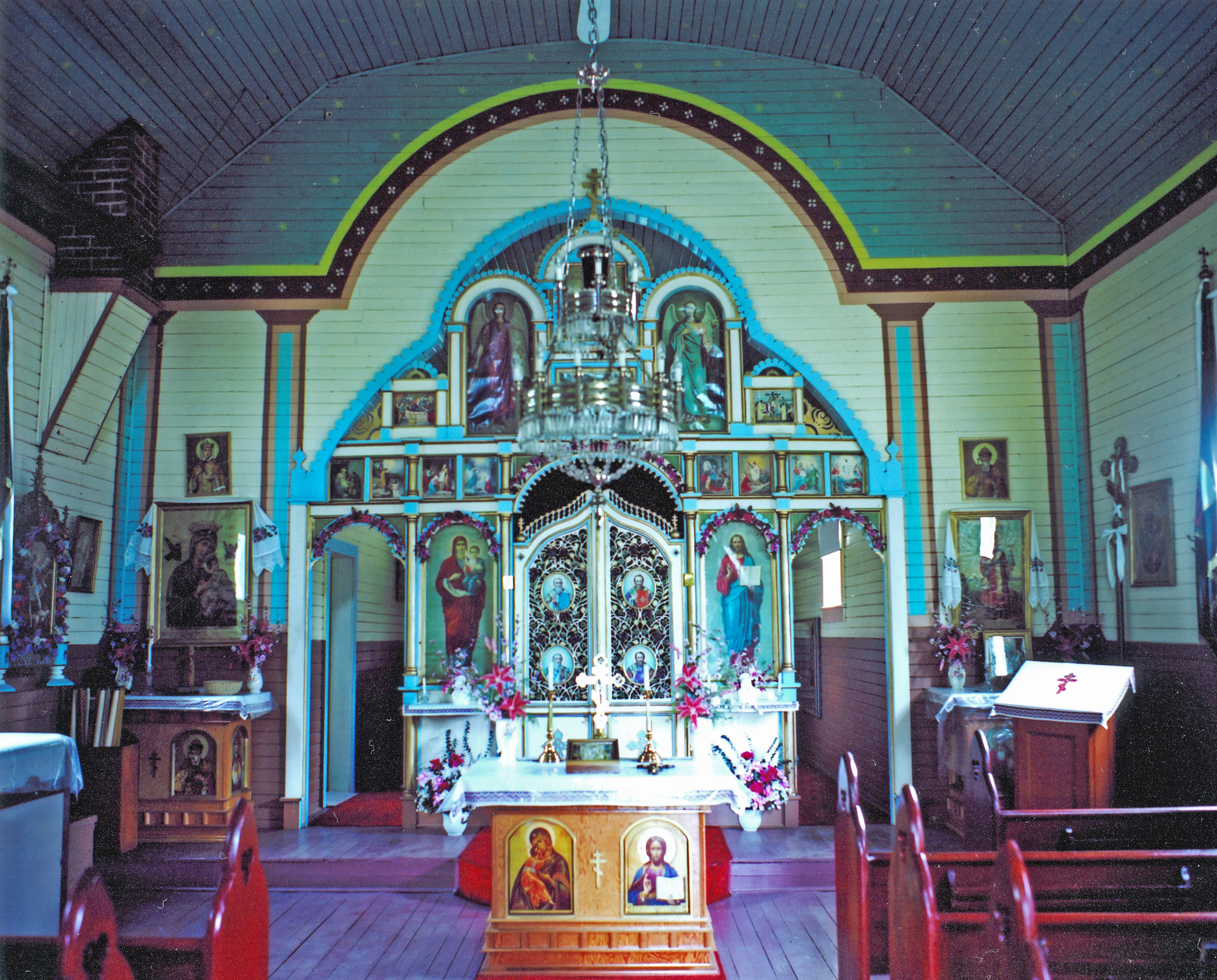 Image of the interior of St. Michael's Church, near Venlaw, MB.