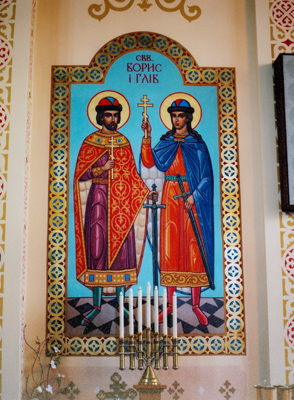 Icon of Sts. Boris & Hlib in St. Mary the Protectress UOC, Winnipeg. Photo by S. Demchinsky (2008).