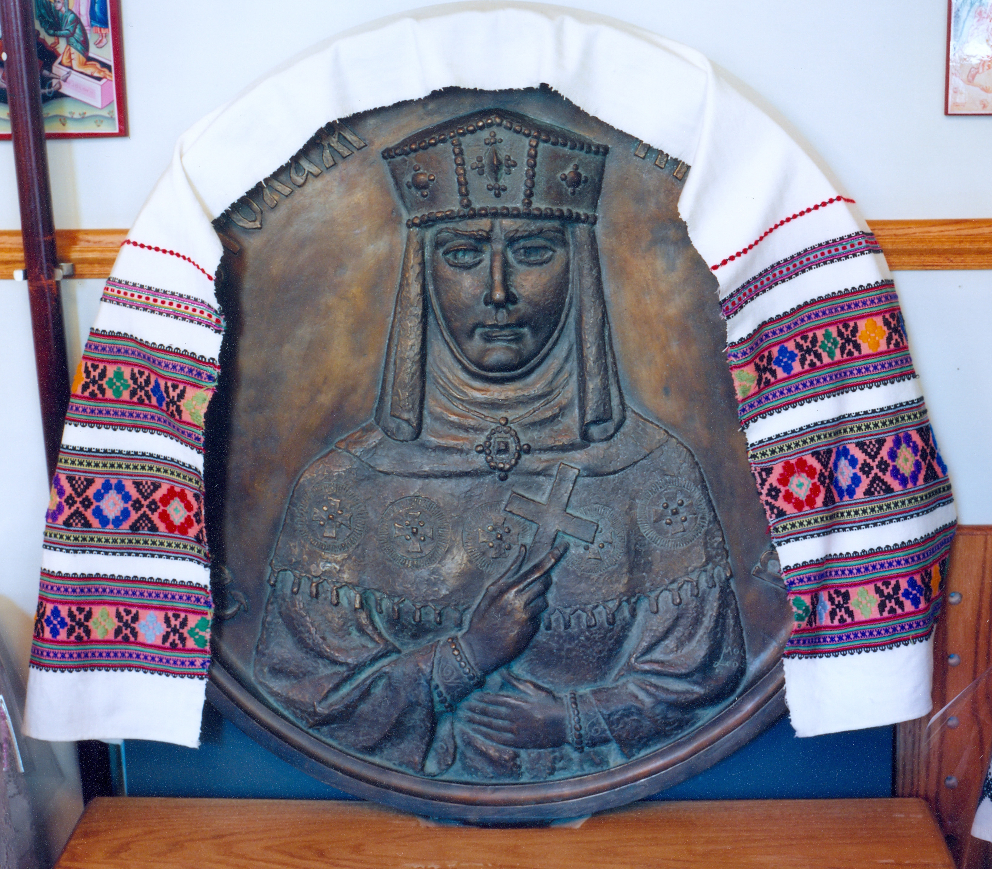 Bronze medalian commemorating St. Olha in St. Michael UOC, Winnipeg, MB (Point Douglas district). Photo by S. Demchinsky (2010).
