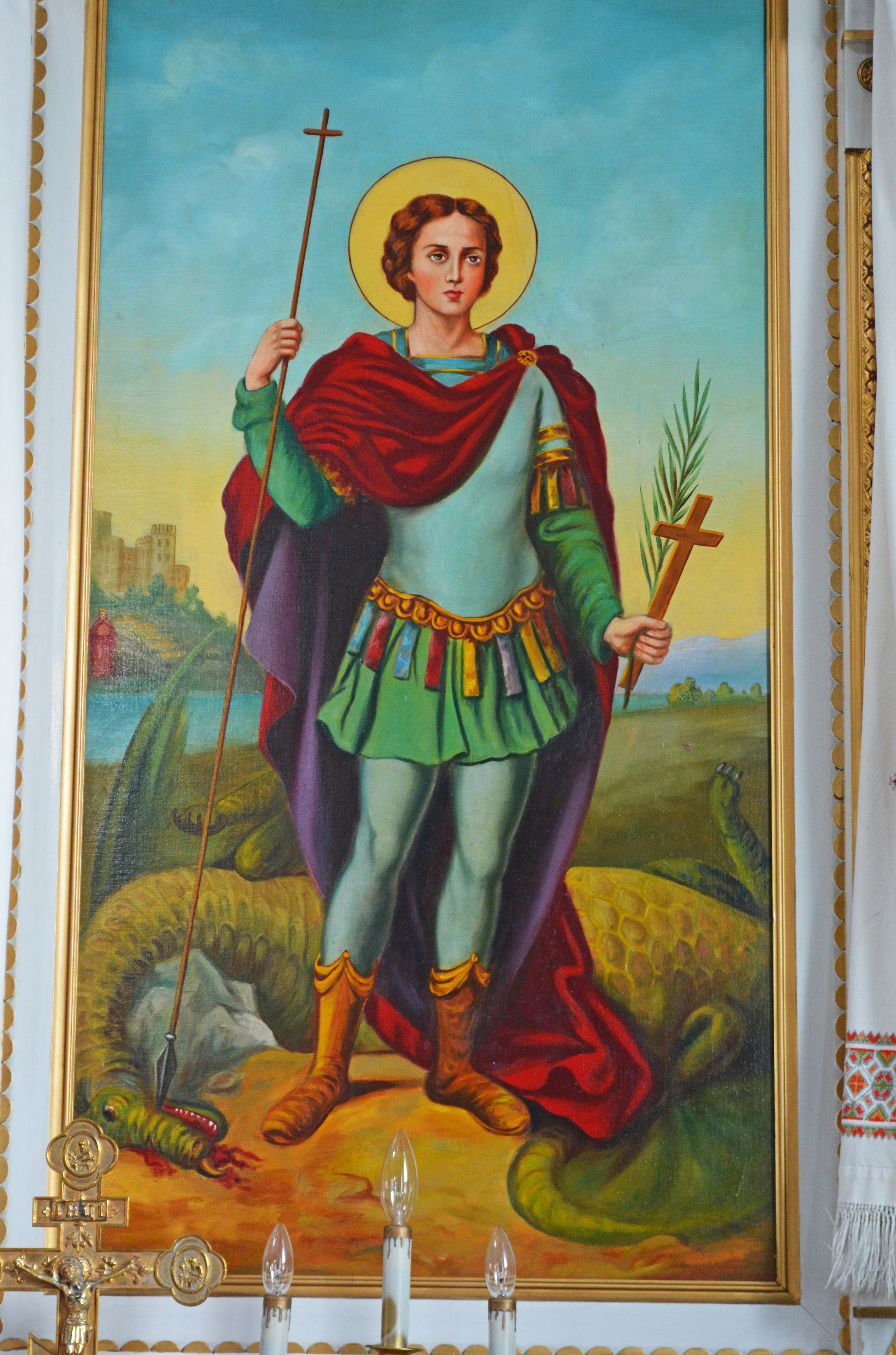 St. George UOC, Fort Frances: Icon of St. George over the shrine to the right of the iconostasis.