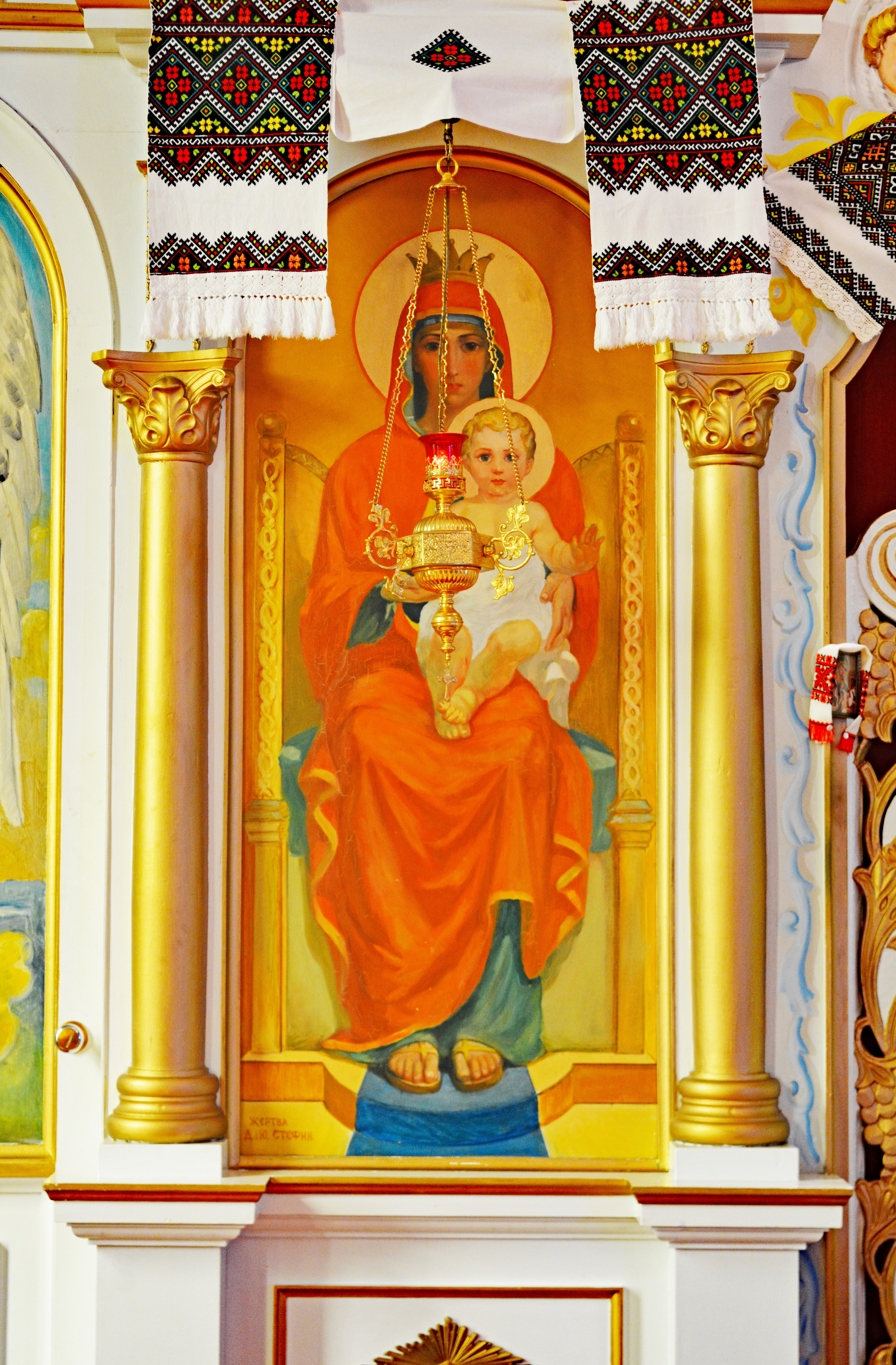 St. George UOC, Grimsby: The icon of the Theotokos on the iconostasis.