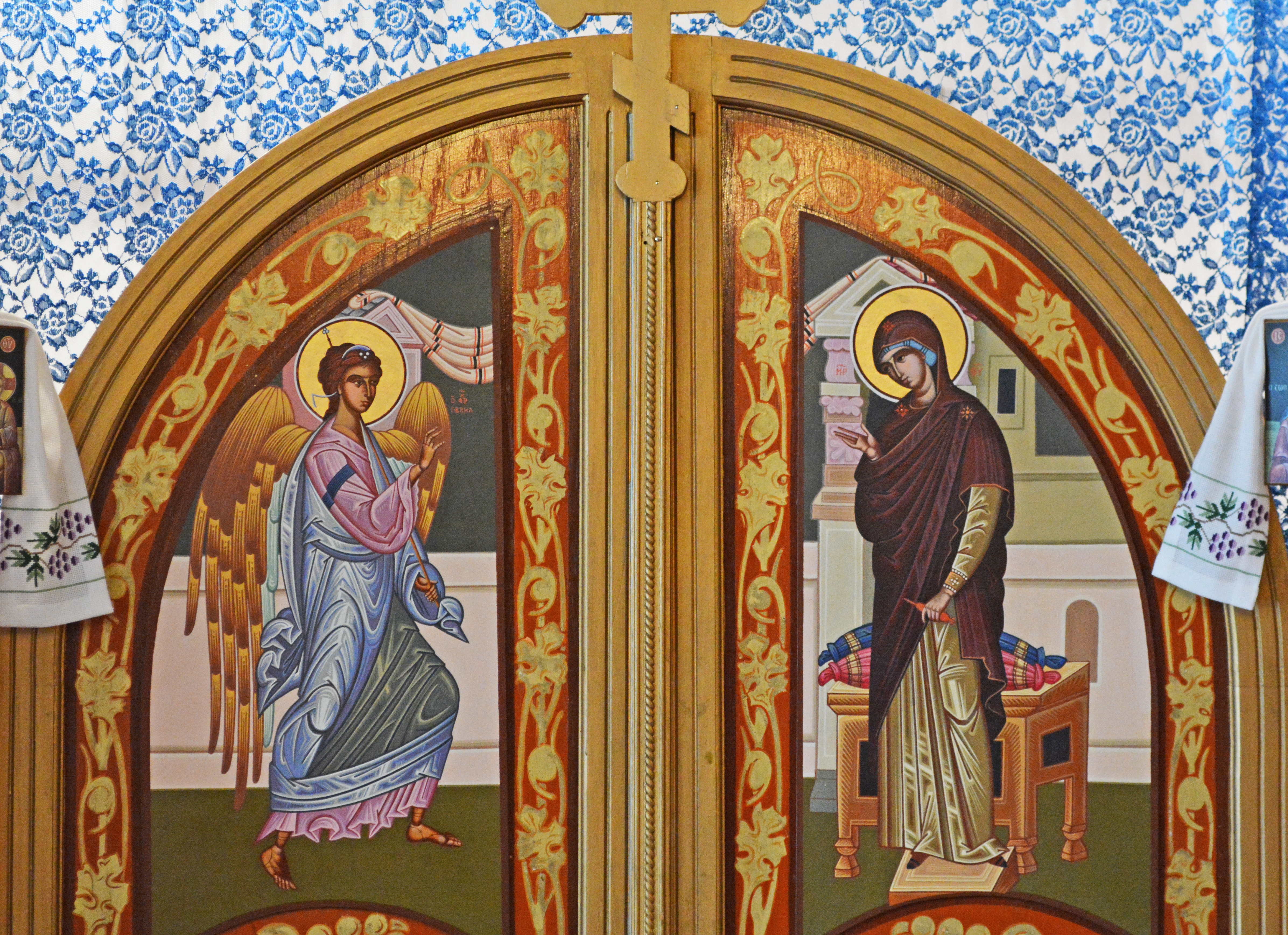 Pokrova Chapel, Hamilton: Image of the Annunciation on the Royal Doors.
