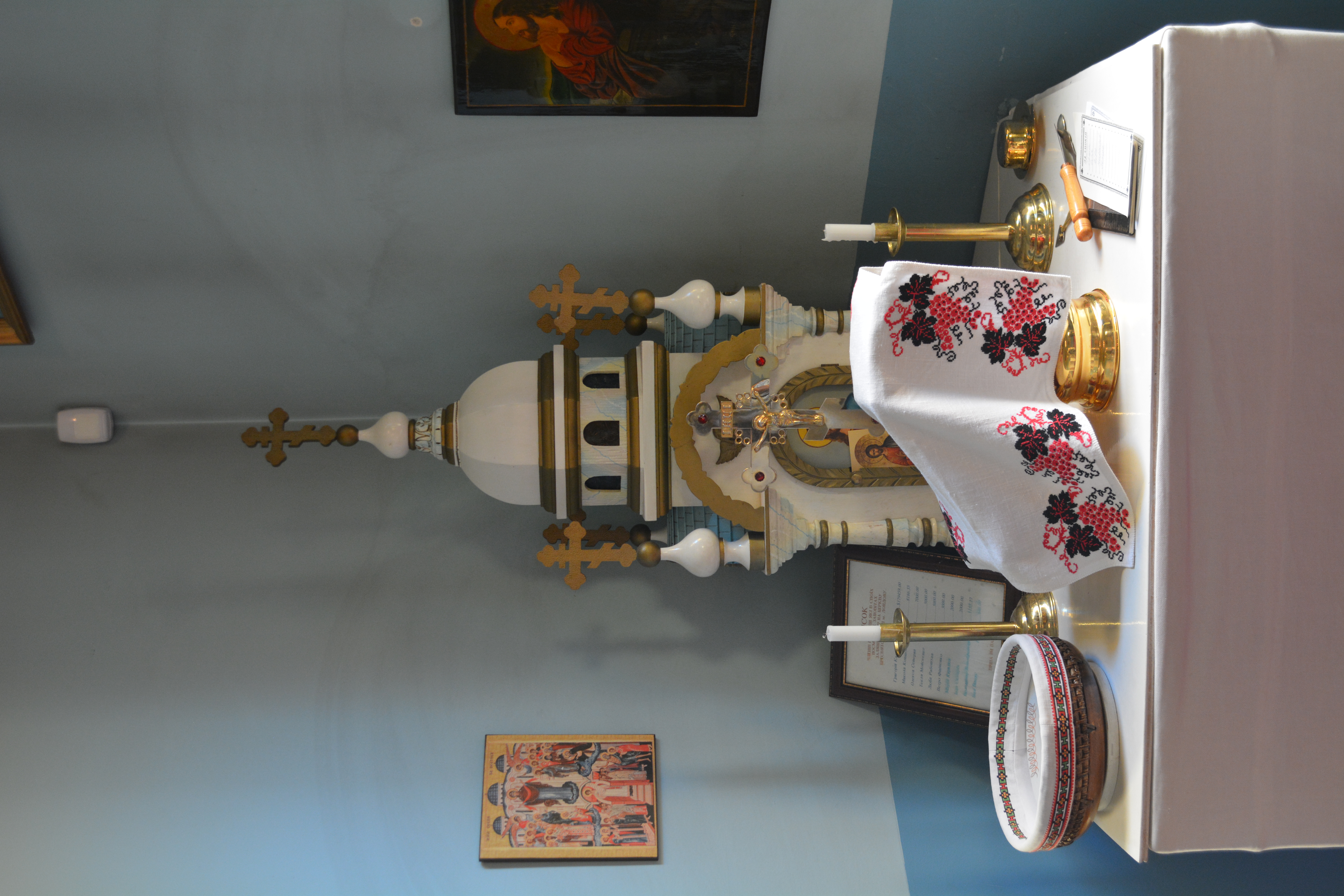 Holy Trinity UOC, London, ON: Image of an the proskomidia table.