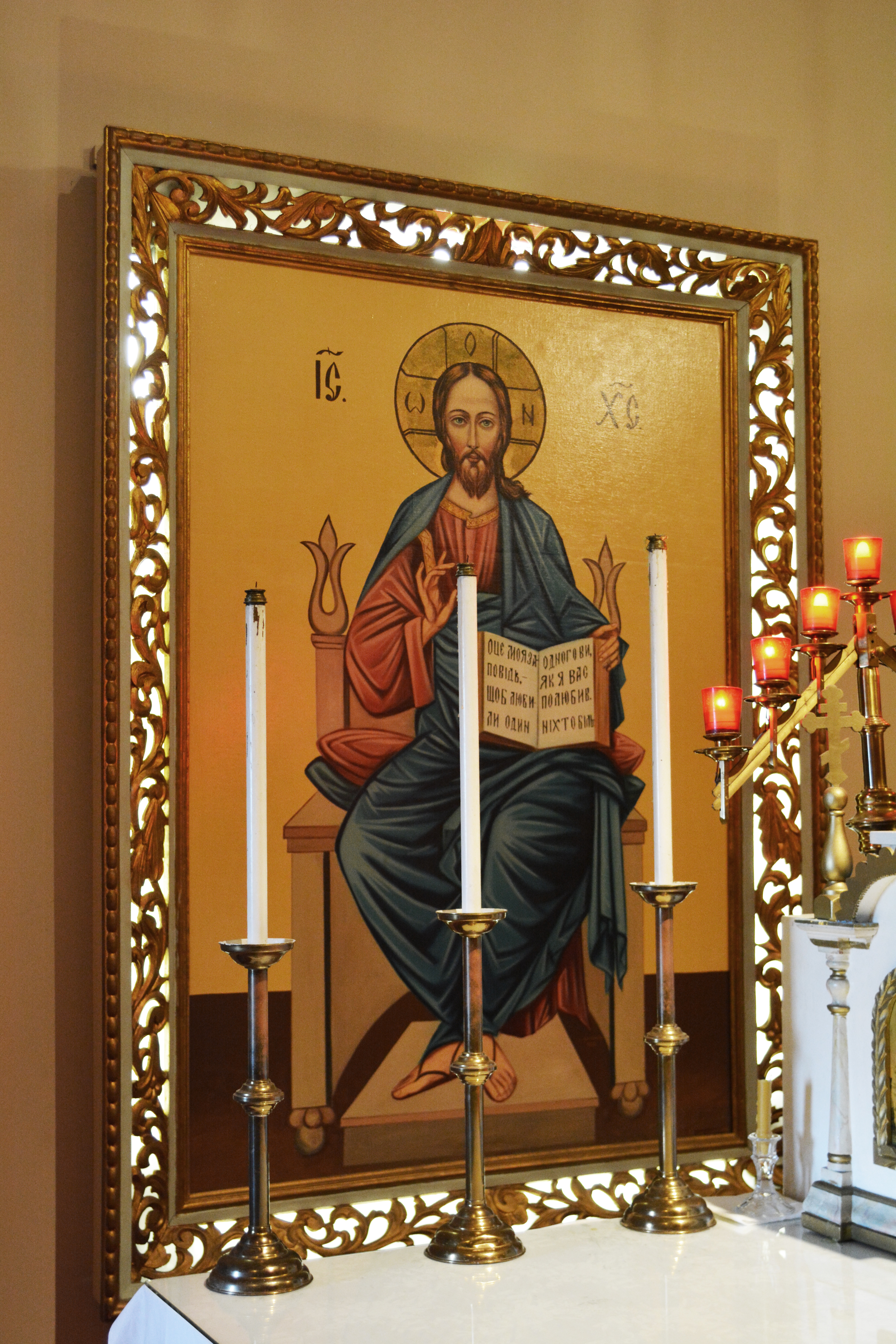 Sts. Peter & Paul UOC, Niagara Falls, ON: Image of Christ enthroned behind the altar.