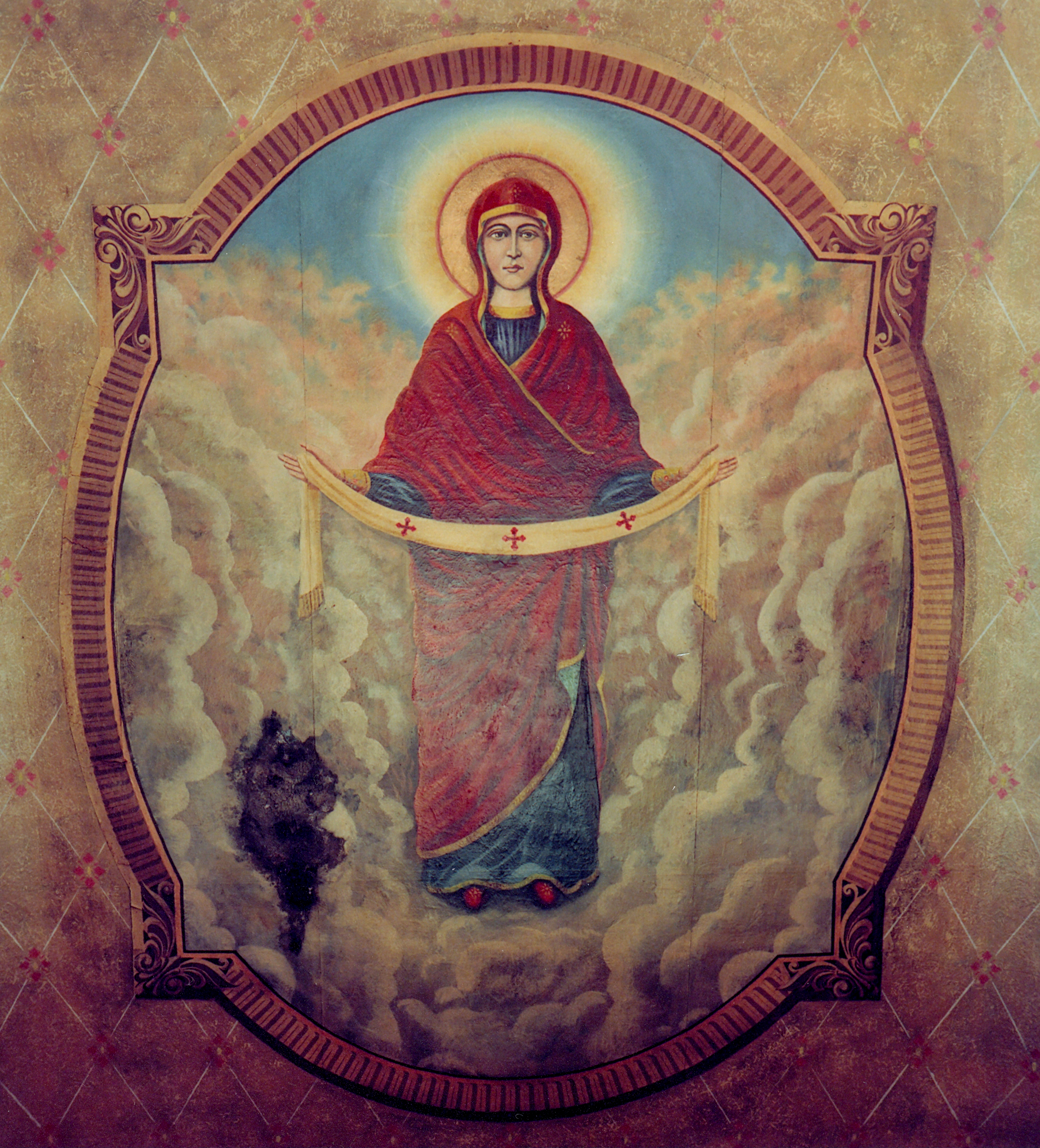 St. Mary's UOC, Oshawa: Image of the icon of the Protection of the Mother of God on the ceiling.