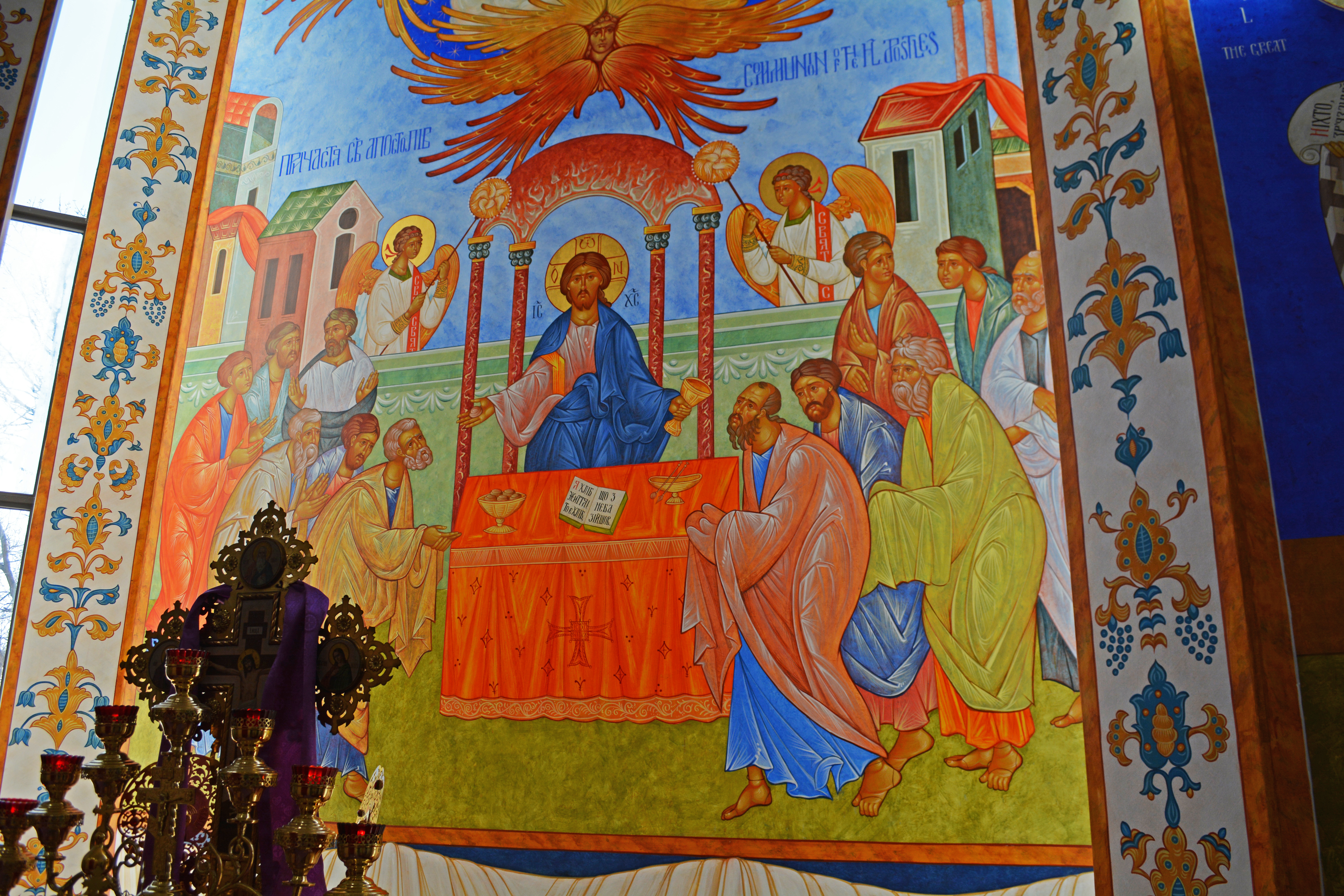 Assumption of the Blessed Virgin UOC, Ottawa: Image of the "communion of the apostles" icon behind the altar.