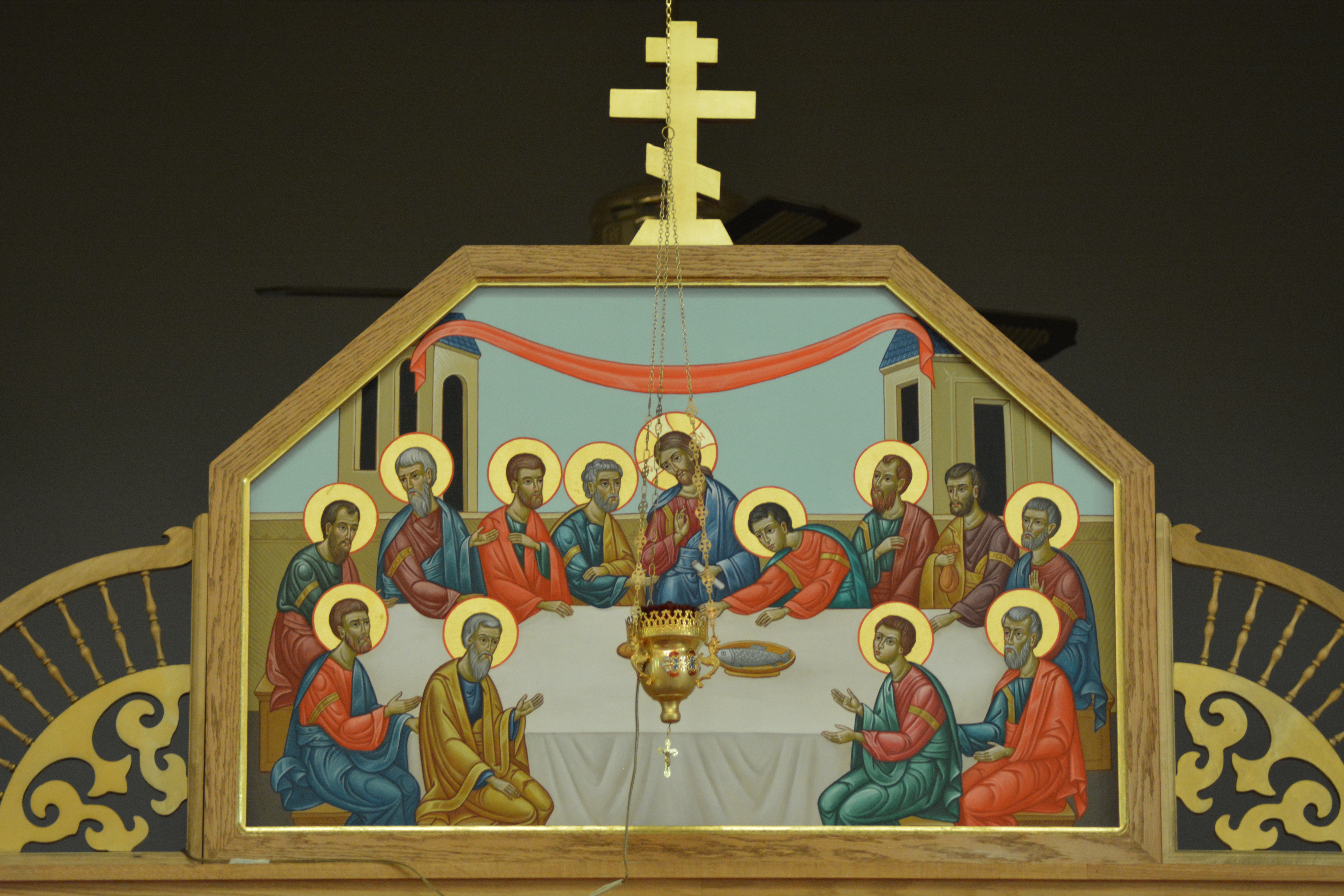 Holy Trinity UOC, Sarnia: Image of the Mystical Supper icon above the Royal Doors.