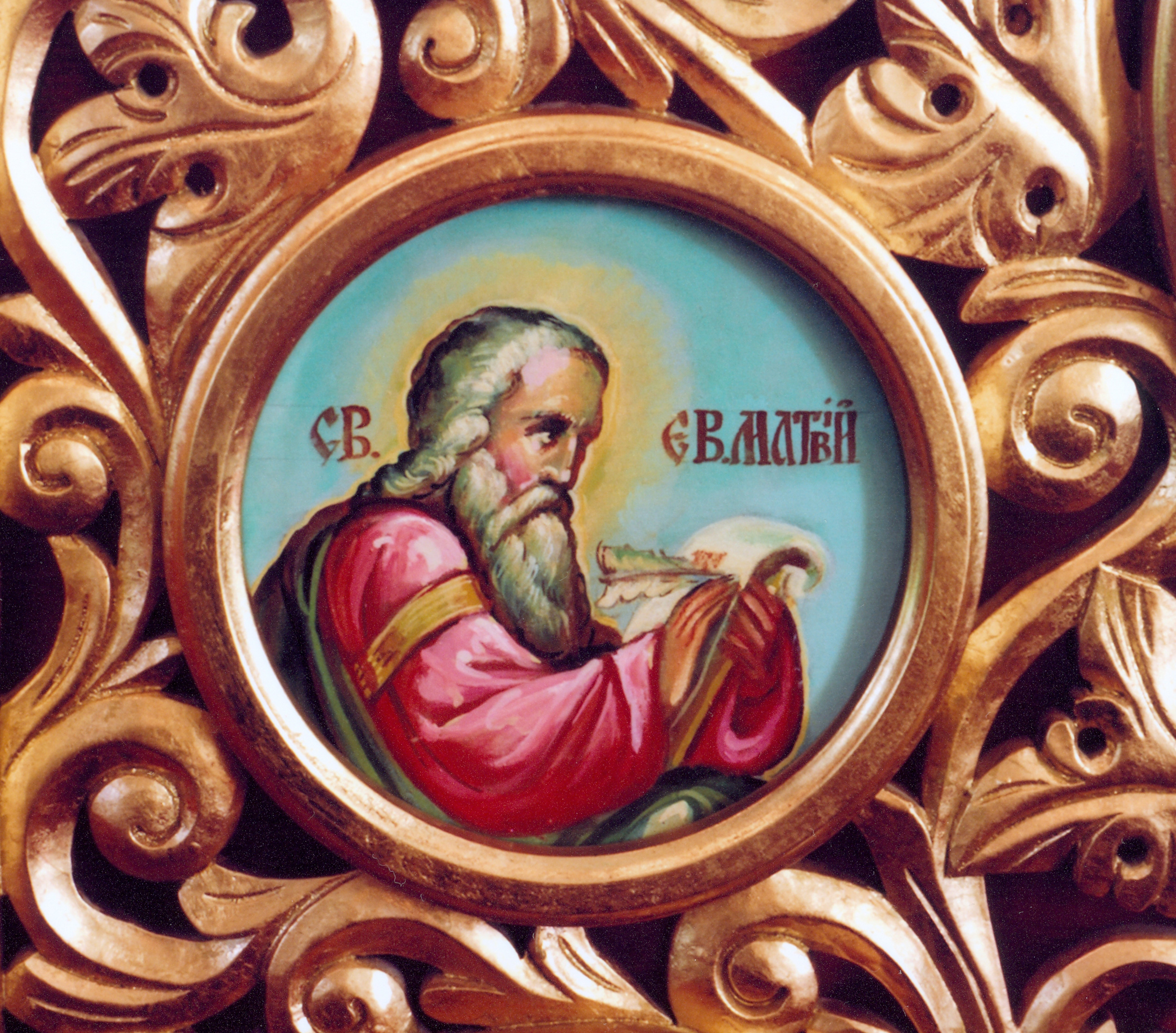 St. Anne UOC, Scarborough: Image of the Evangelist Matthew from the Royal Doors..