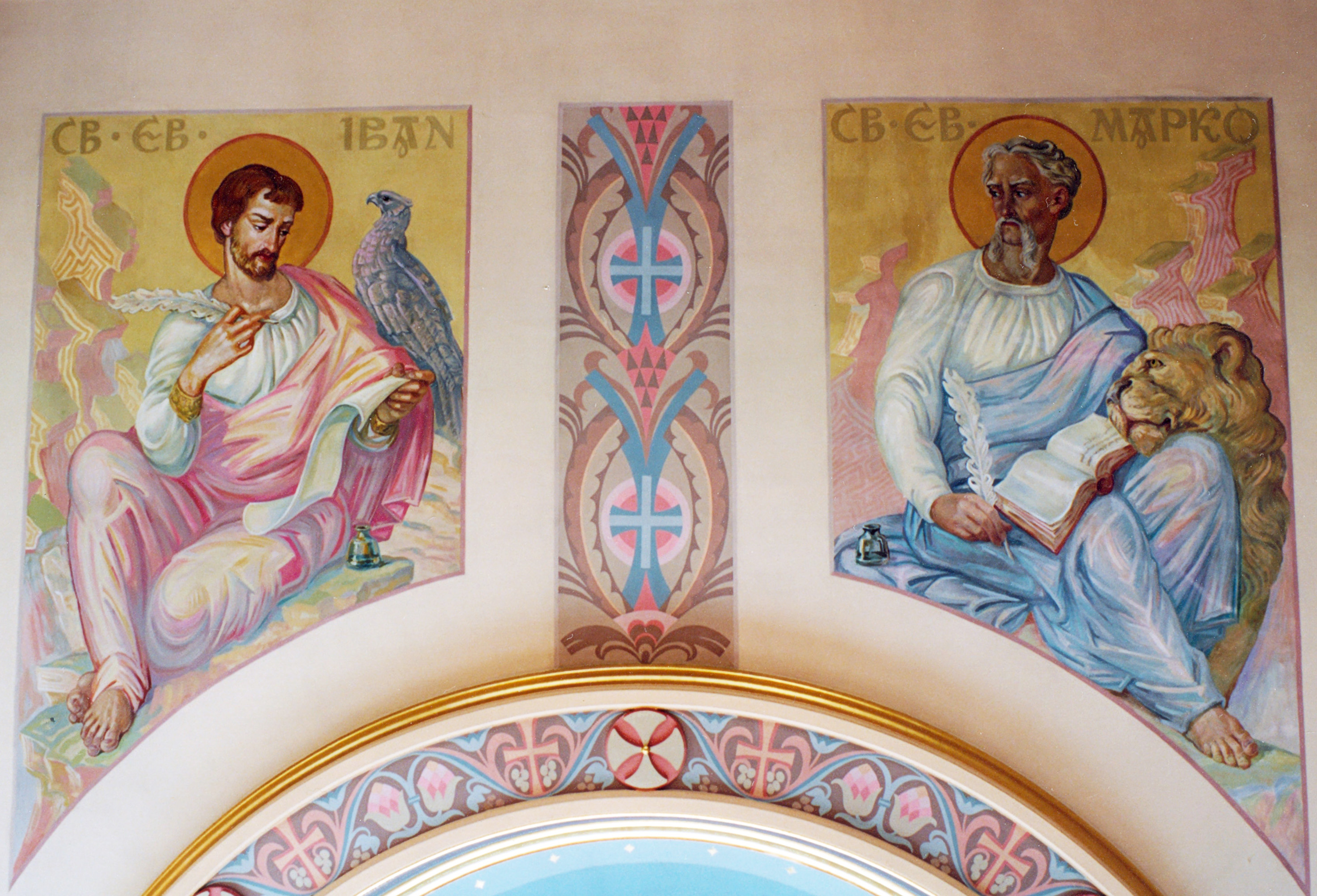 St. Volodymyr Ukrainian Orthodox Cathedral, Toronto: Image of two of the four Evangelists on the ceiling.