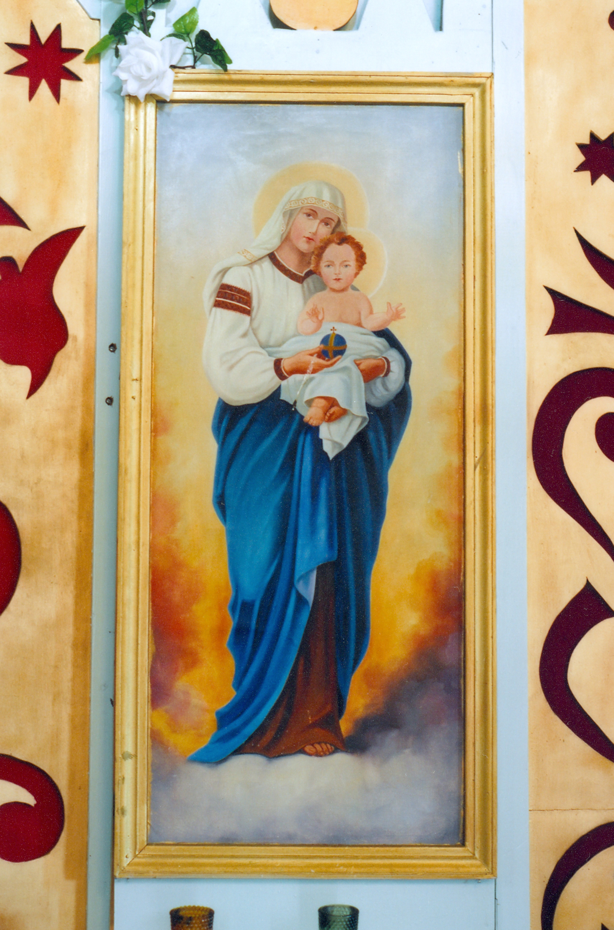 Sts Peter & Paul UOC, Brooksby, SK, image of the Theotokos on the iconostas by S. Demchinsky (2010).