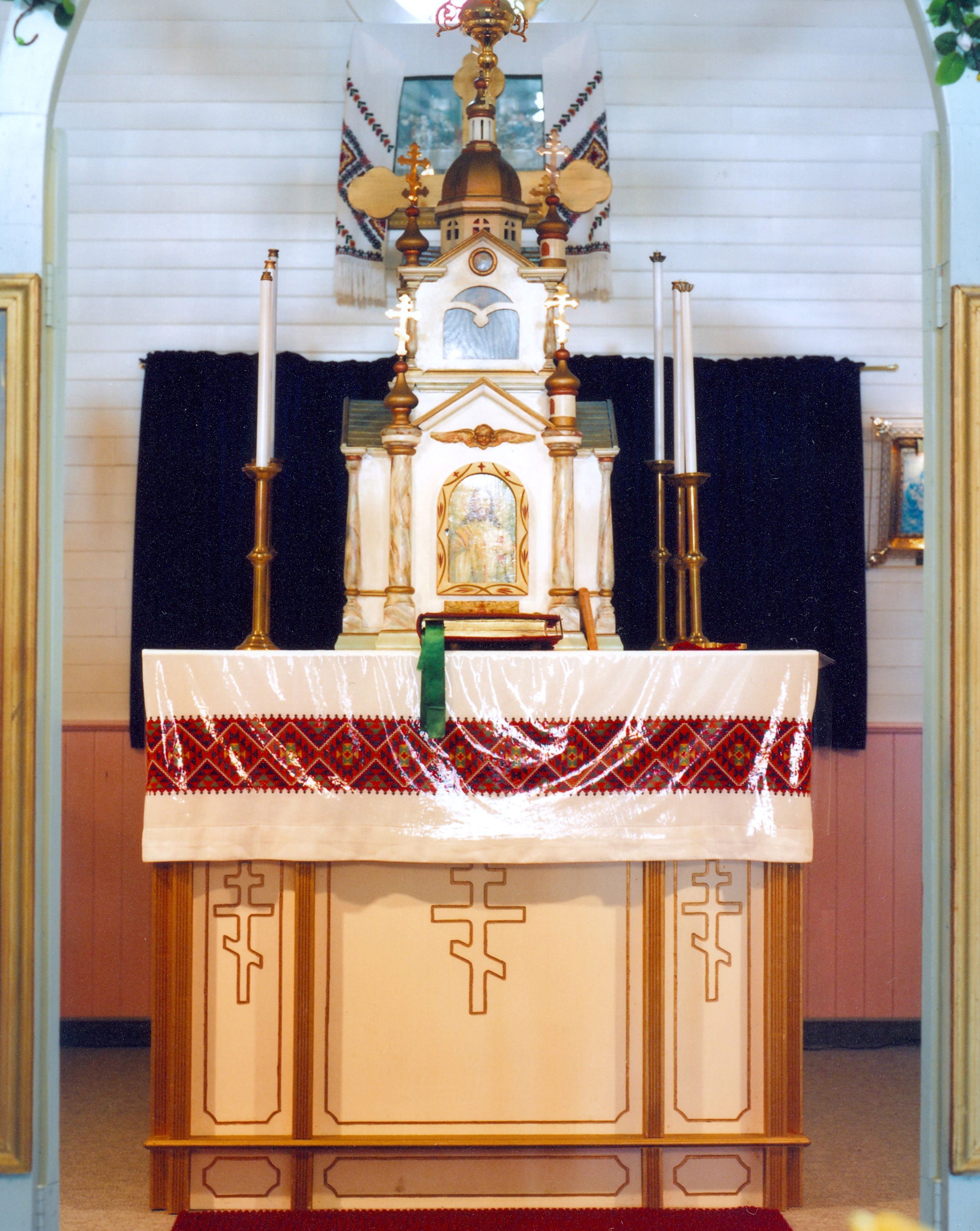 Sts Peter & Paul UOC, Brooksby, SK, image of the altar by S. Demchinsky (2010).