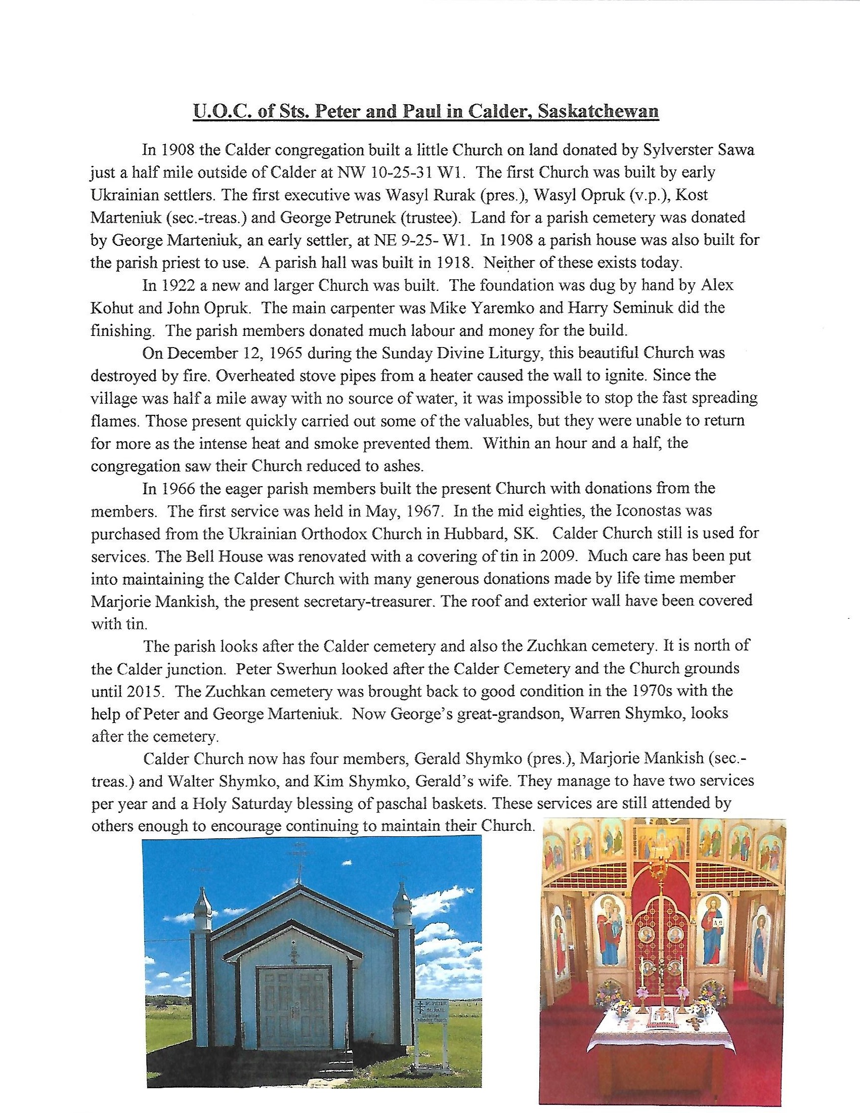 History of Sts. Peter & Paul UOC, located in the village of Calder, SK.