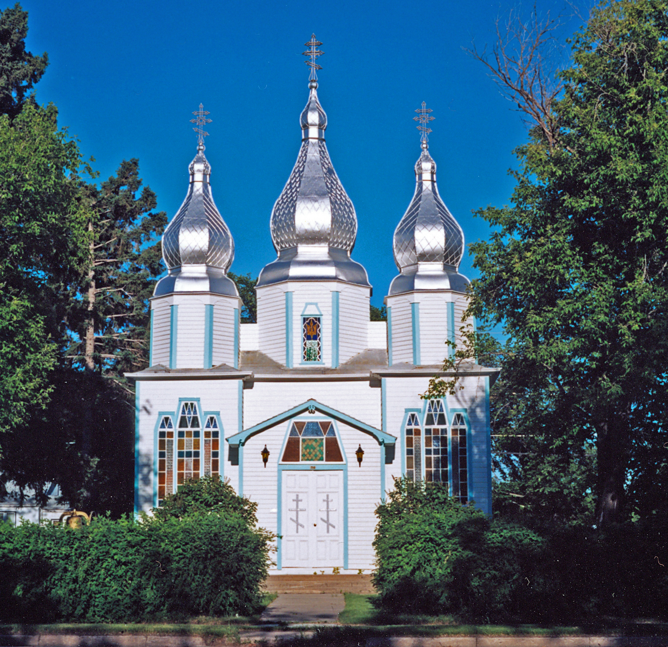 Exterior of Holy Trinity Historic Church, Canora, SK. Photo by S. Demchinsky (2000).