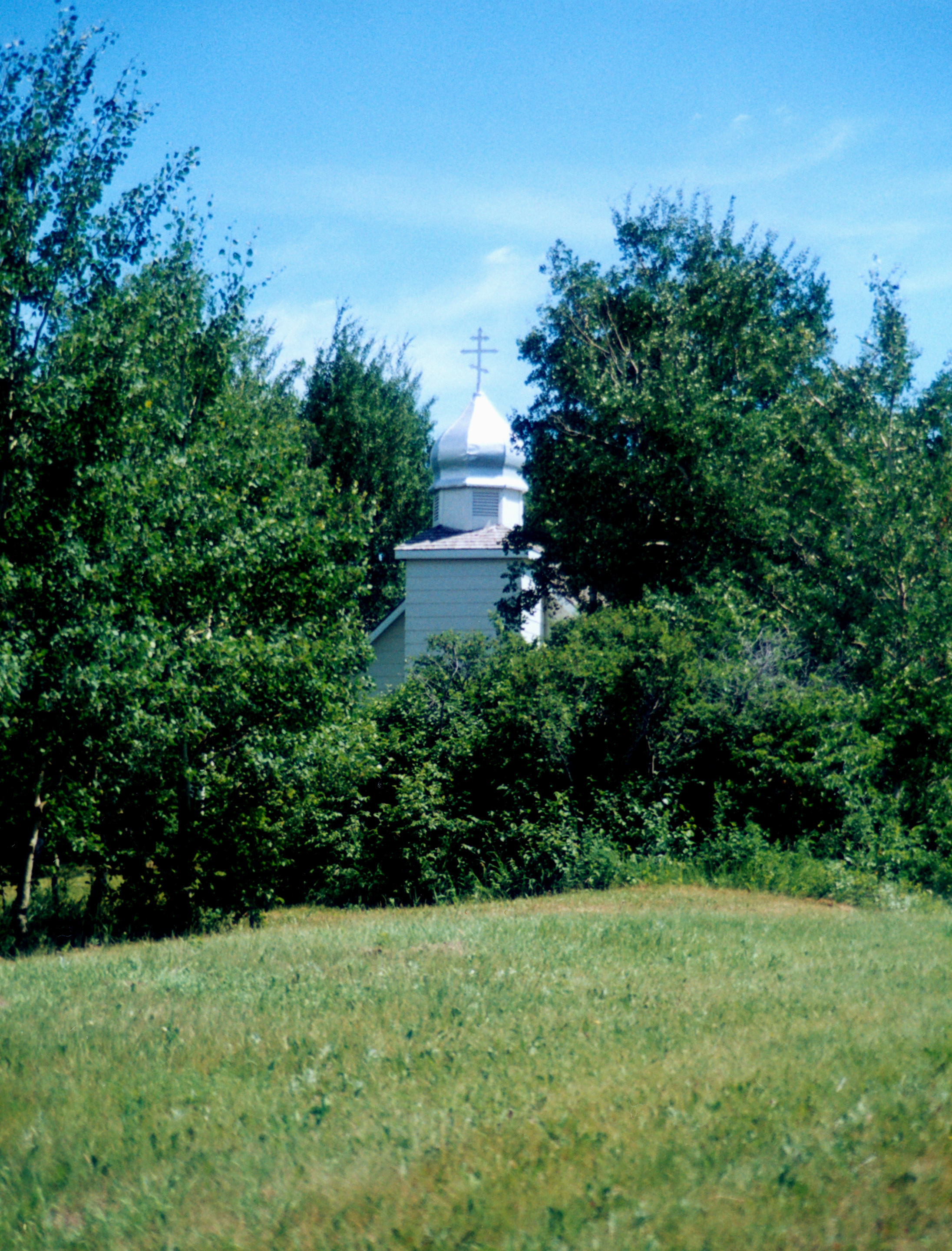 Exterior image of St. Michael Chapel, Camp Trident, Crystal Lake, SK. Photo by S. Demchinsky (1995).