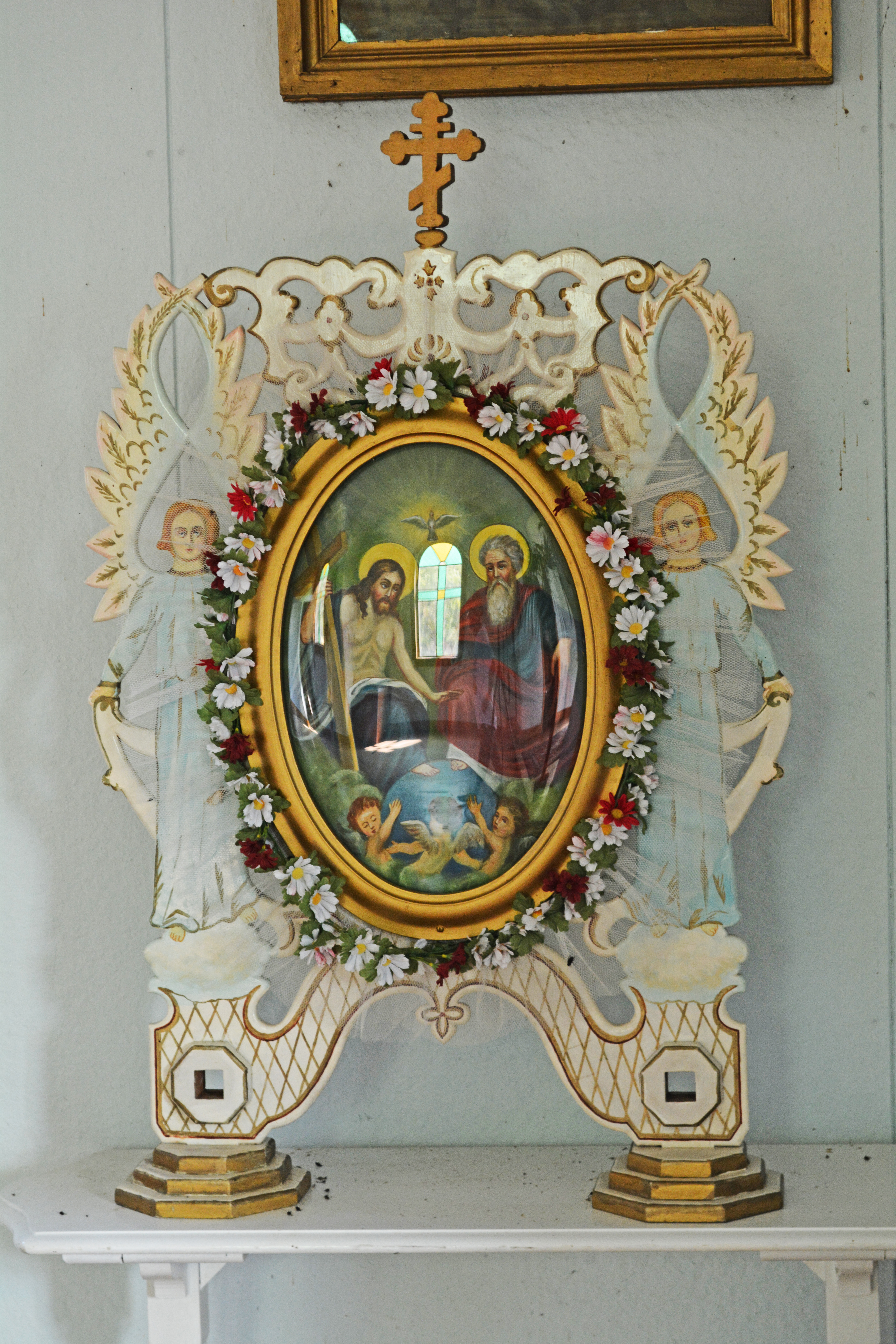 St. Volodymyr UOC, Dominion, SK, image of a shrine to the Holy Trinity. Photo by S. Demchinsky (2017).