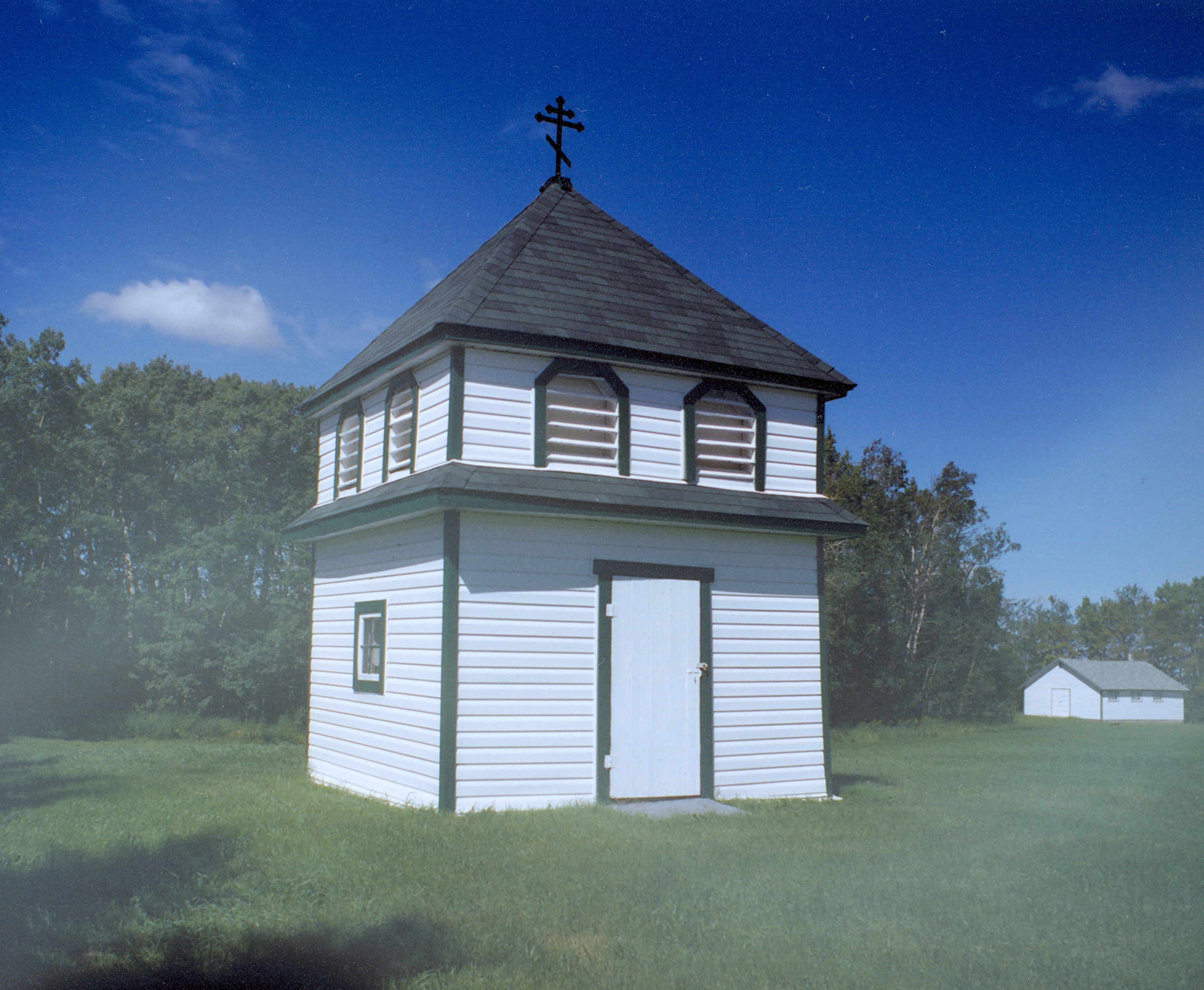 Image of the belfry for Sts. Peter and Paul UOC, near Foam Lake, SK. Also known as Melnychuk’s. Photo by S. Demchinsky (2010).